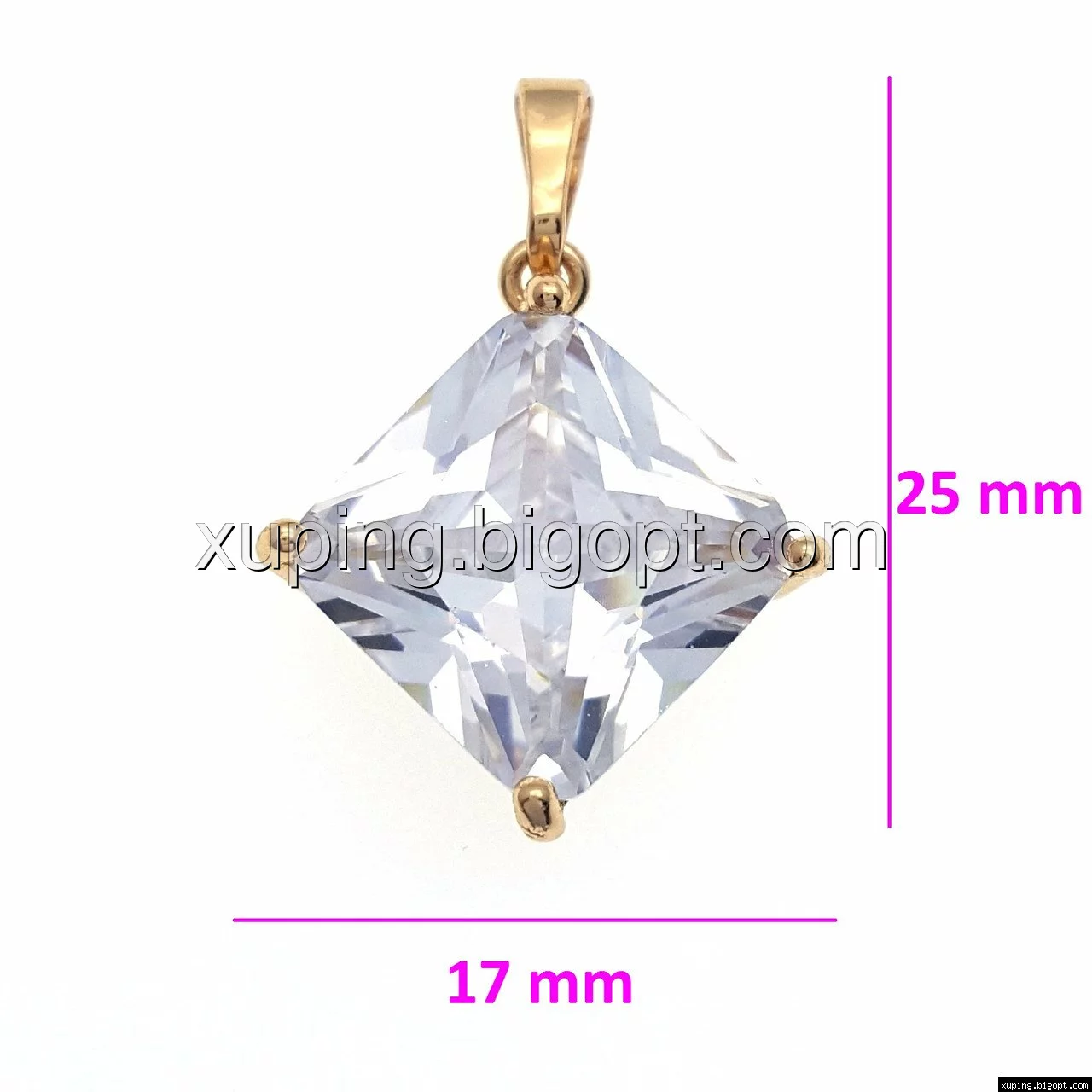 Кулон Ромб, вставка: кубичный цирконий, позолота
