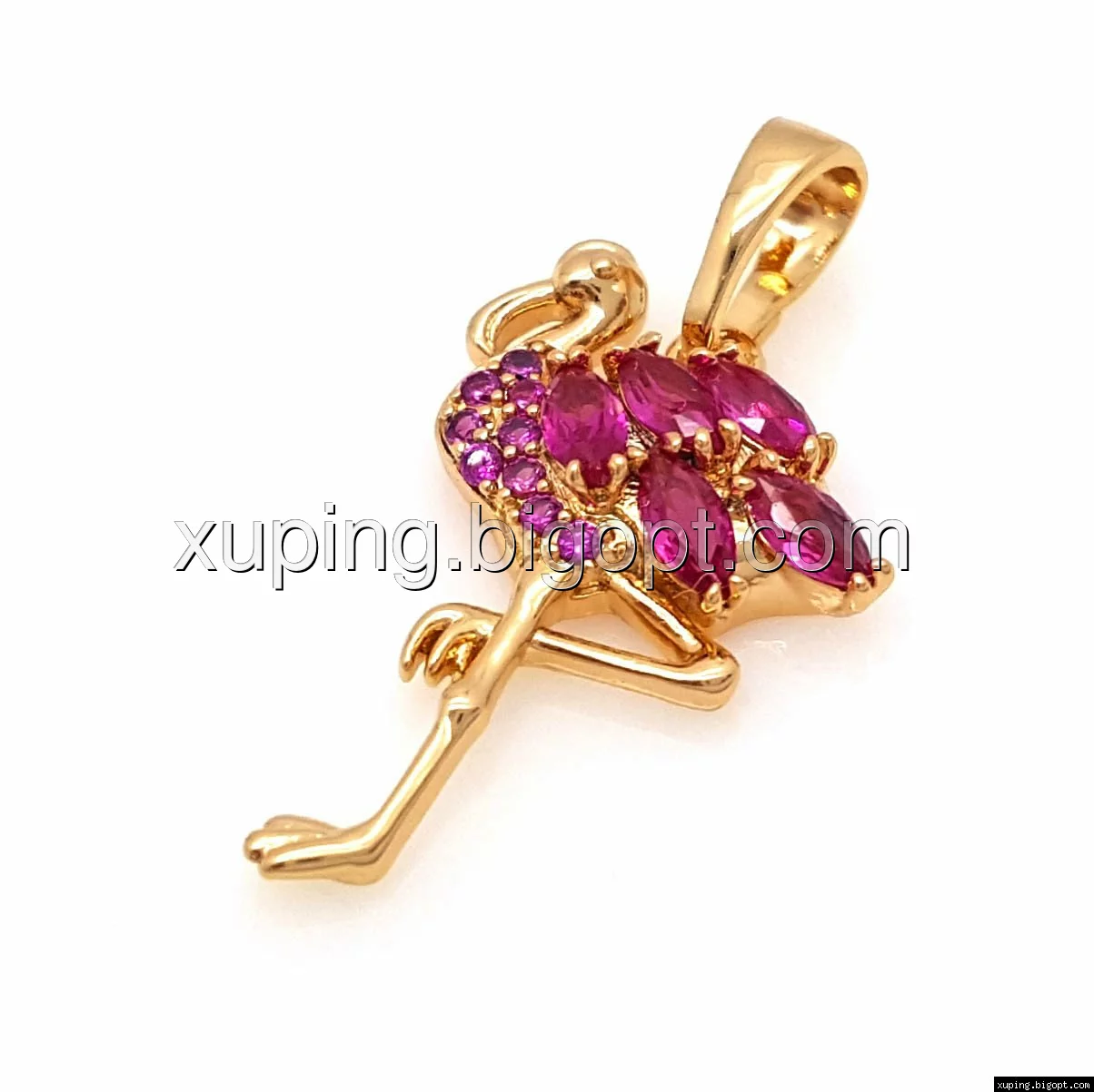 Кулон Розовый Фламинго, вставка цирконий, позолоченный