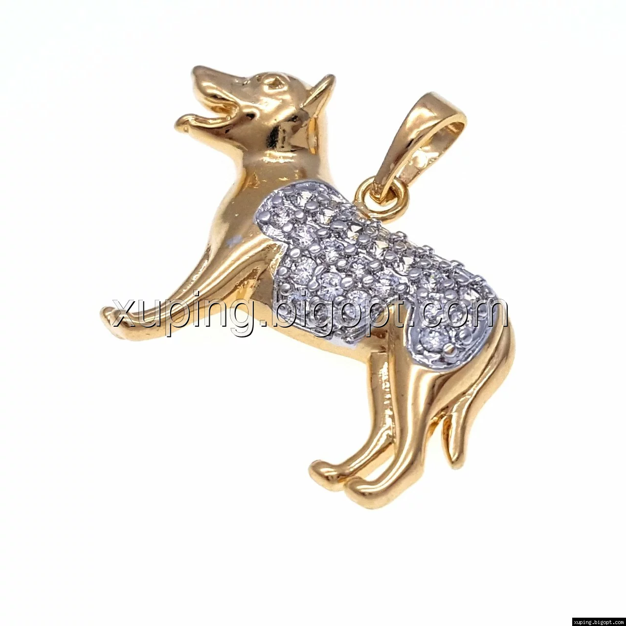 Кулон Пес, инкрустация цирконием, позолота+родий