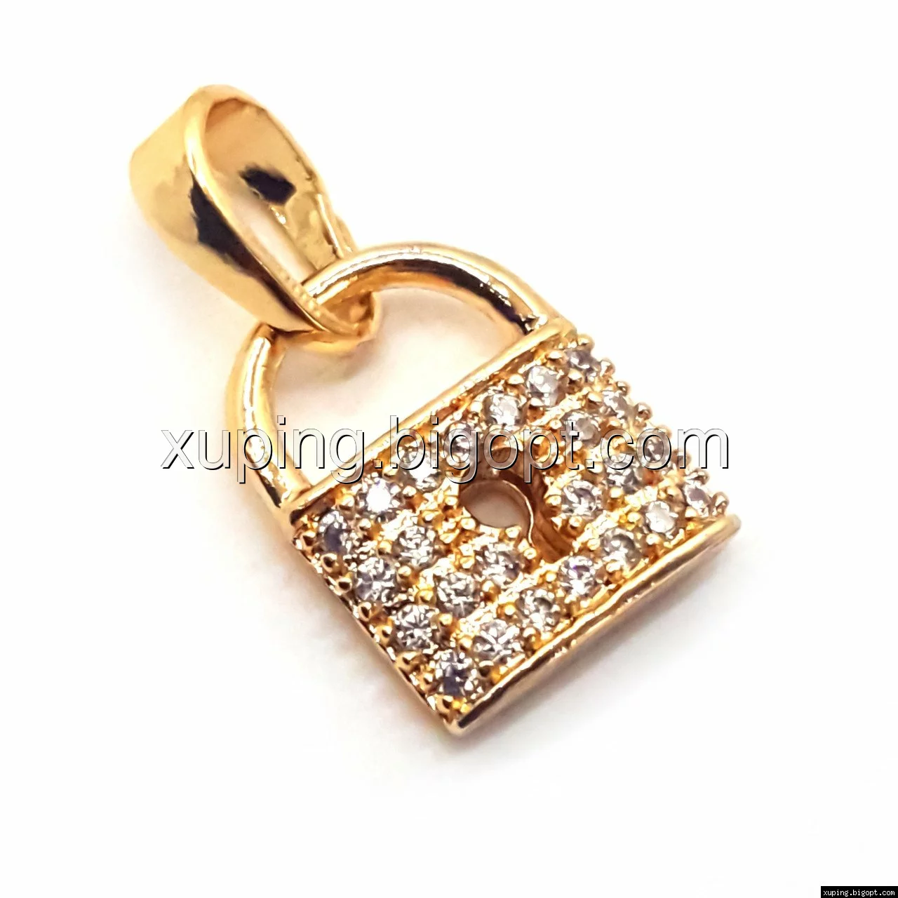 Кулон позолоченный 75776 Замочек, россыпь мелкого циркония