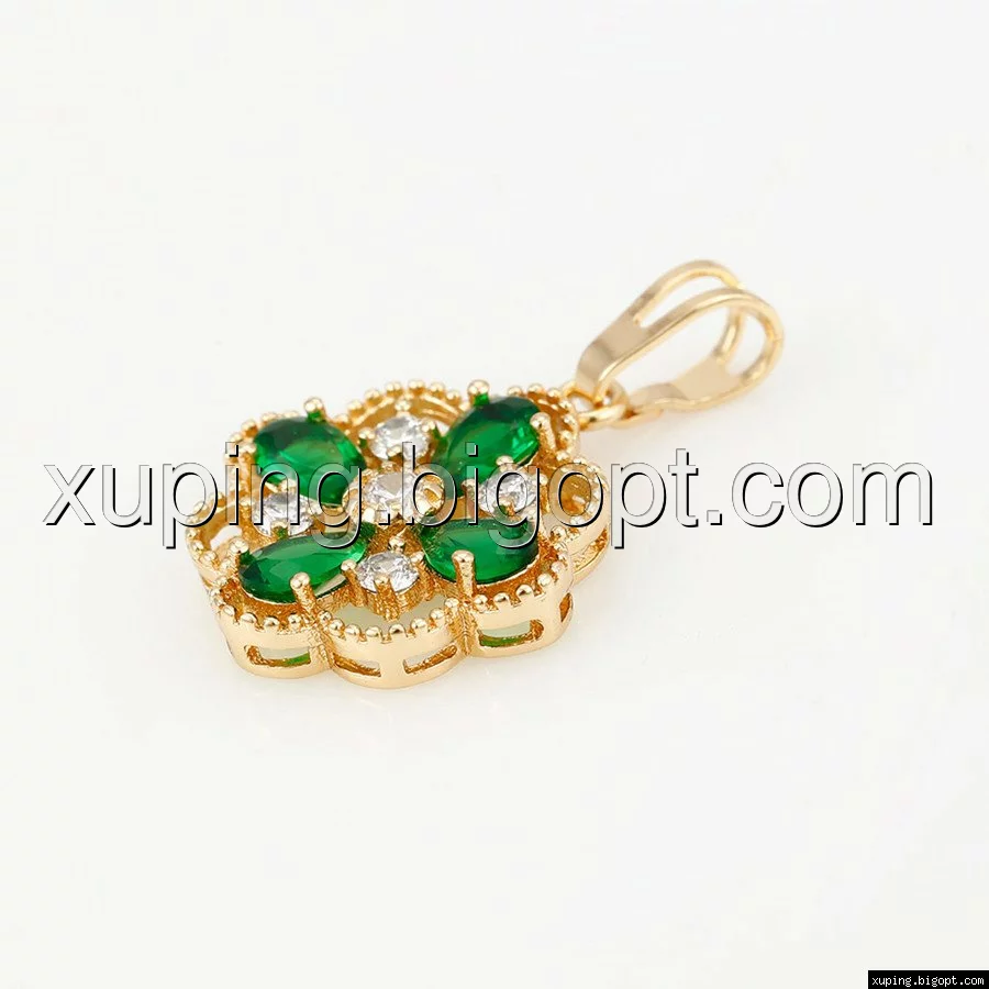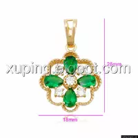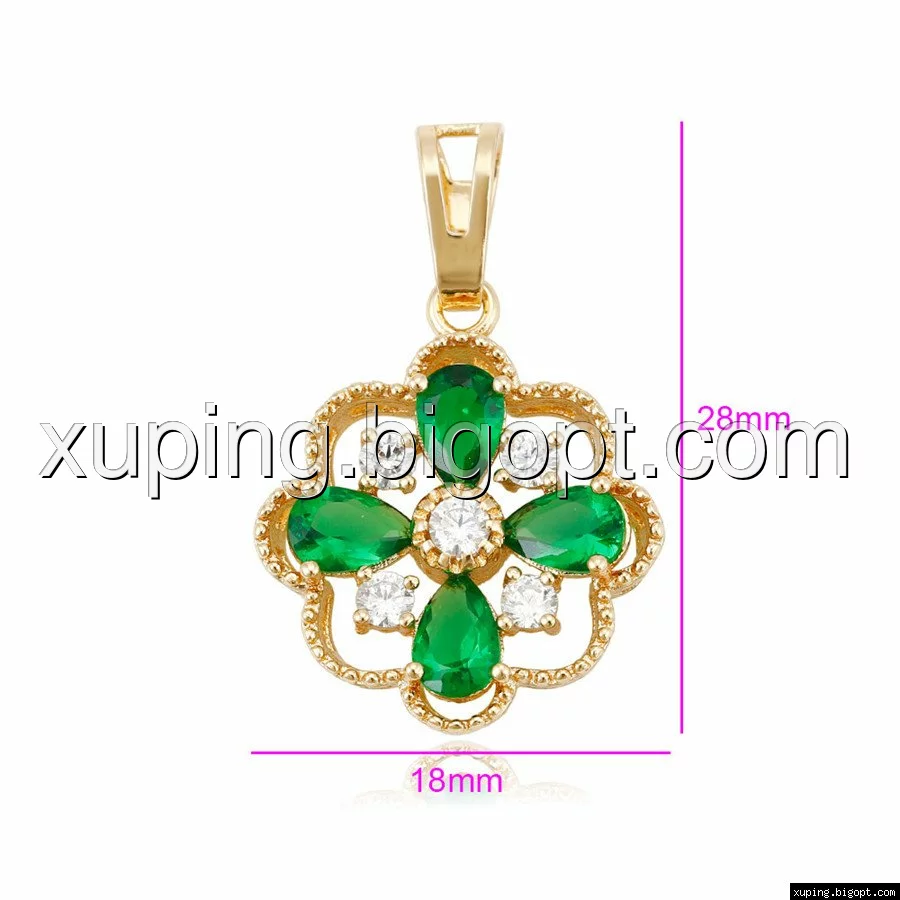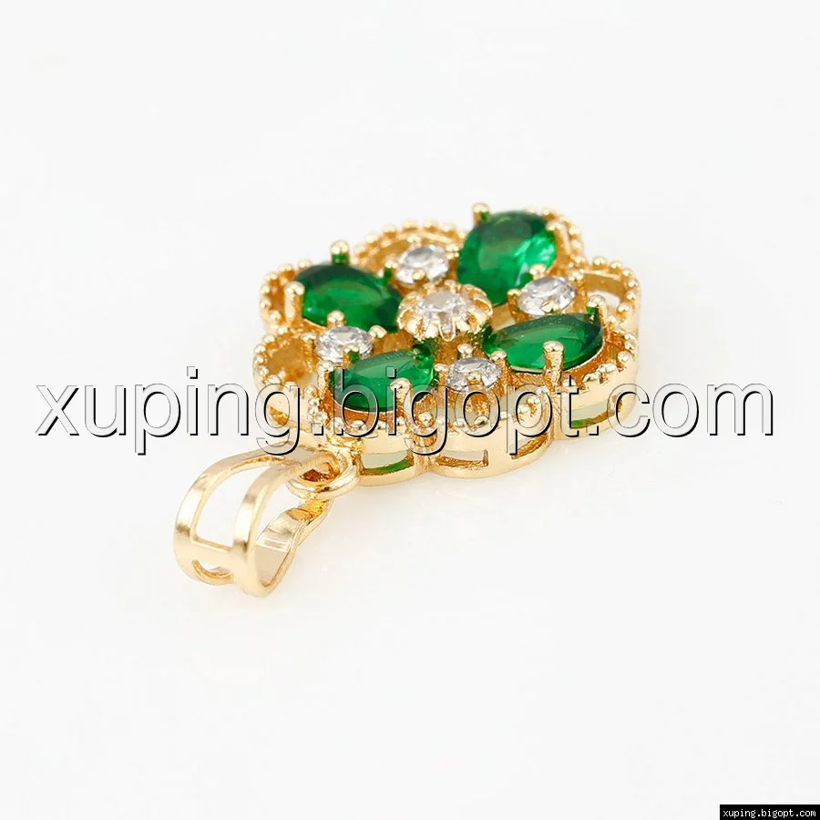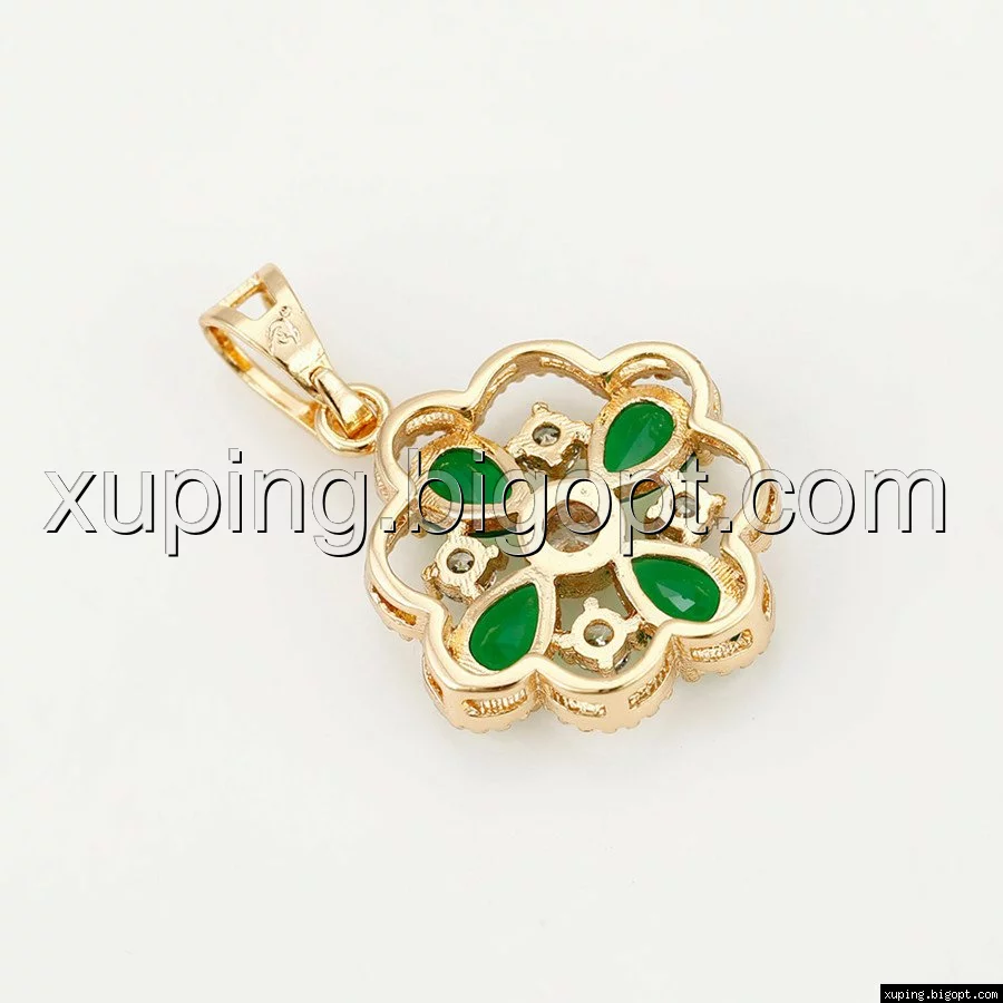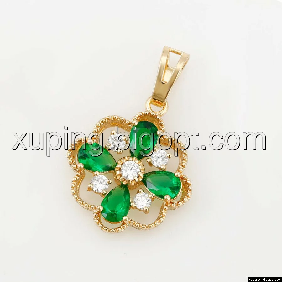 Кулон позолоченный, Ажурный цветок, с зеленым цирконием