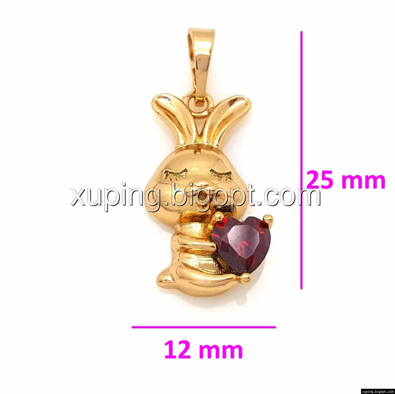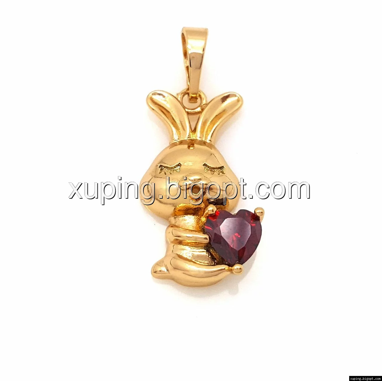 Кулон позолоченный, Зайченок с красным сердцем, вставка цирконий