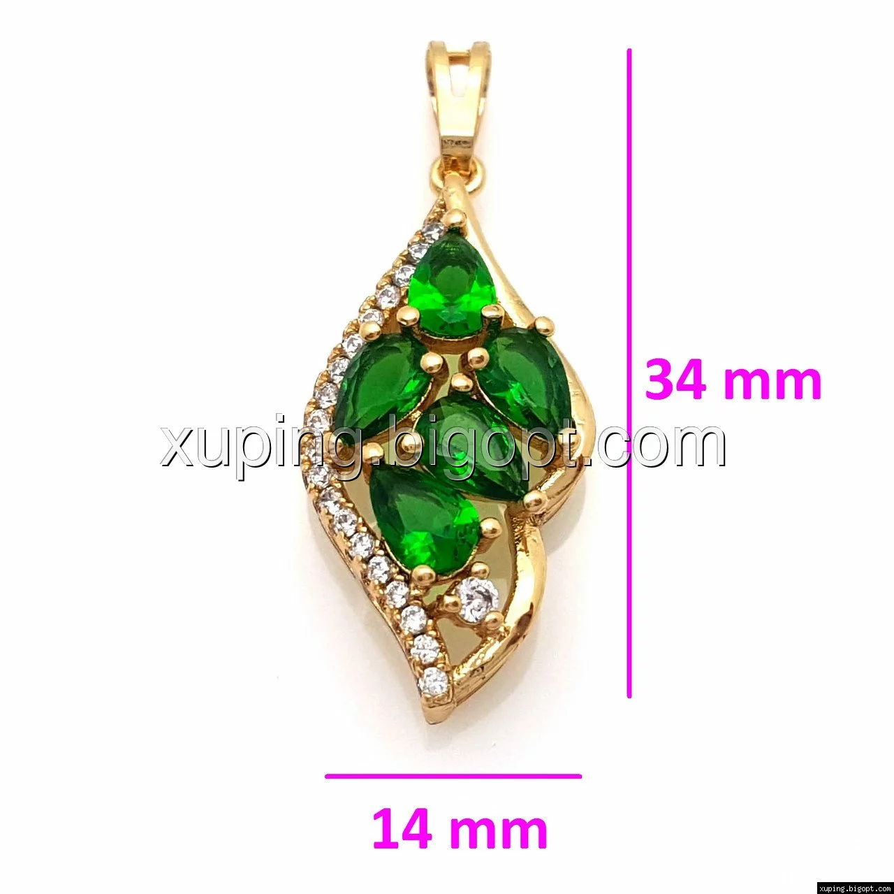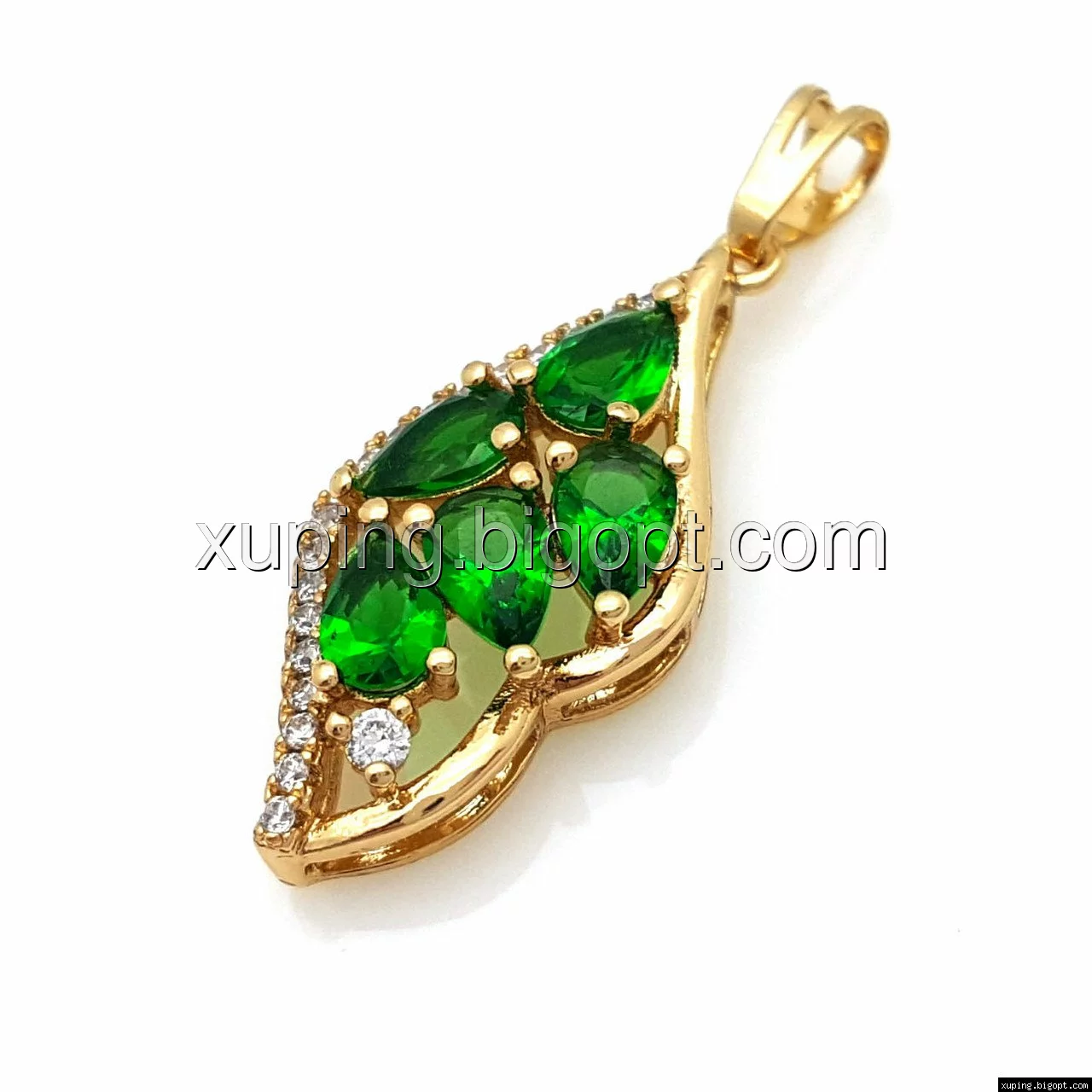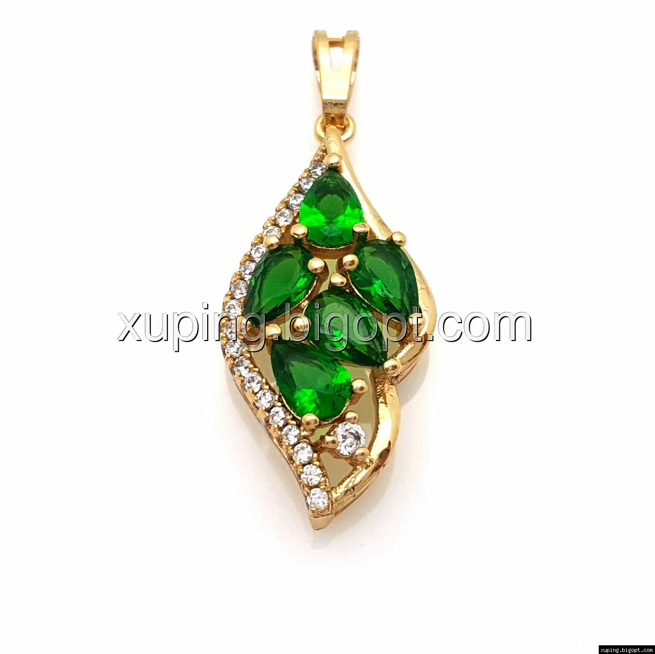 Кулон позолоченный, Листик с зеленым цирконием, Xuping
