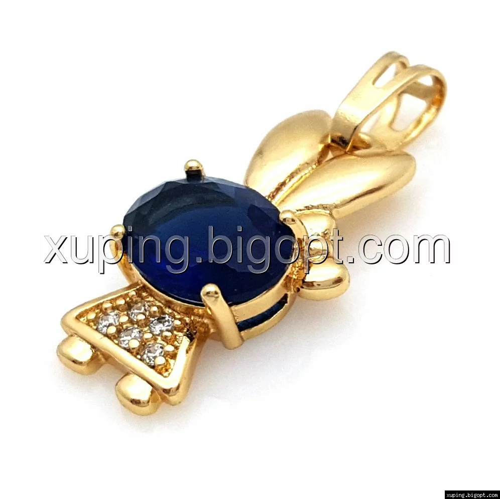 Кулон позолоченный, Зайка, с синим цирконием