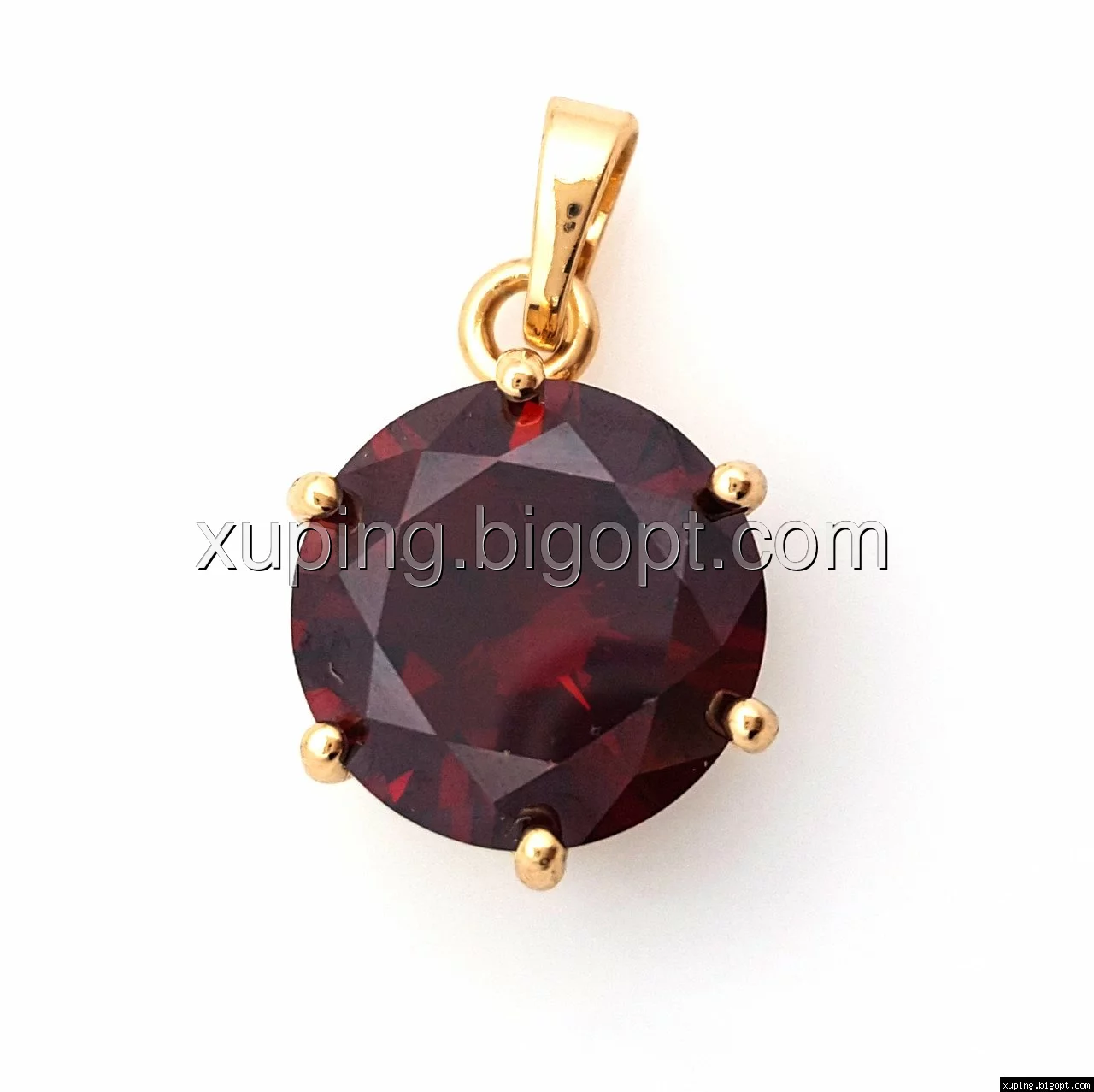 Кулон позолоченный, Красный цирконий