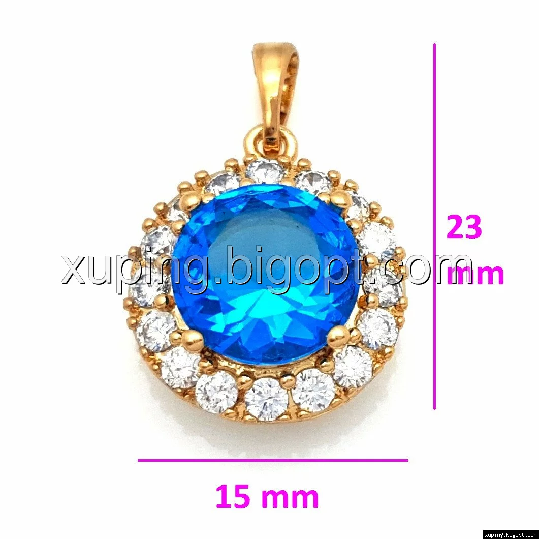 Кулон позолоченный, Круг с бирюзовым цирконием и ободком