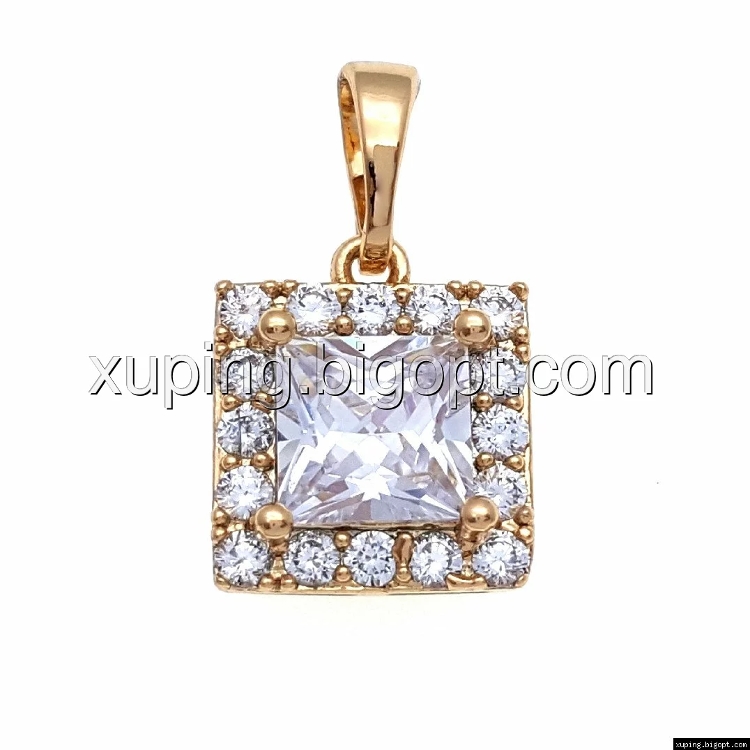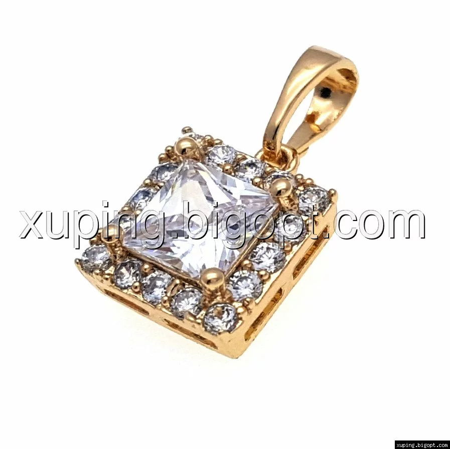 Кулон позолоченный, Квадрат с граненным цирконием, Xuping