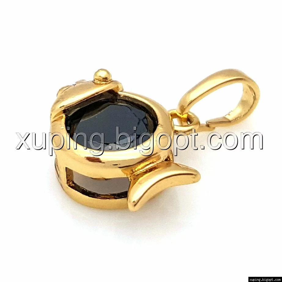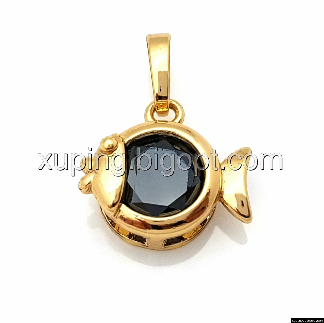 Кулон позолоченный, Золотая Рыбка, с черным цирконием