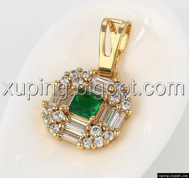 Кулон позолоченный, Россыпь циркония с зеленым камнем по центру
