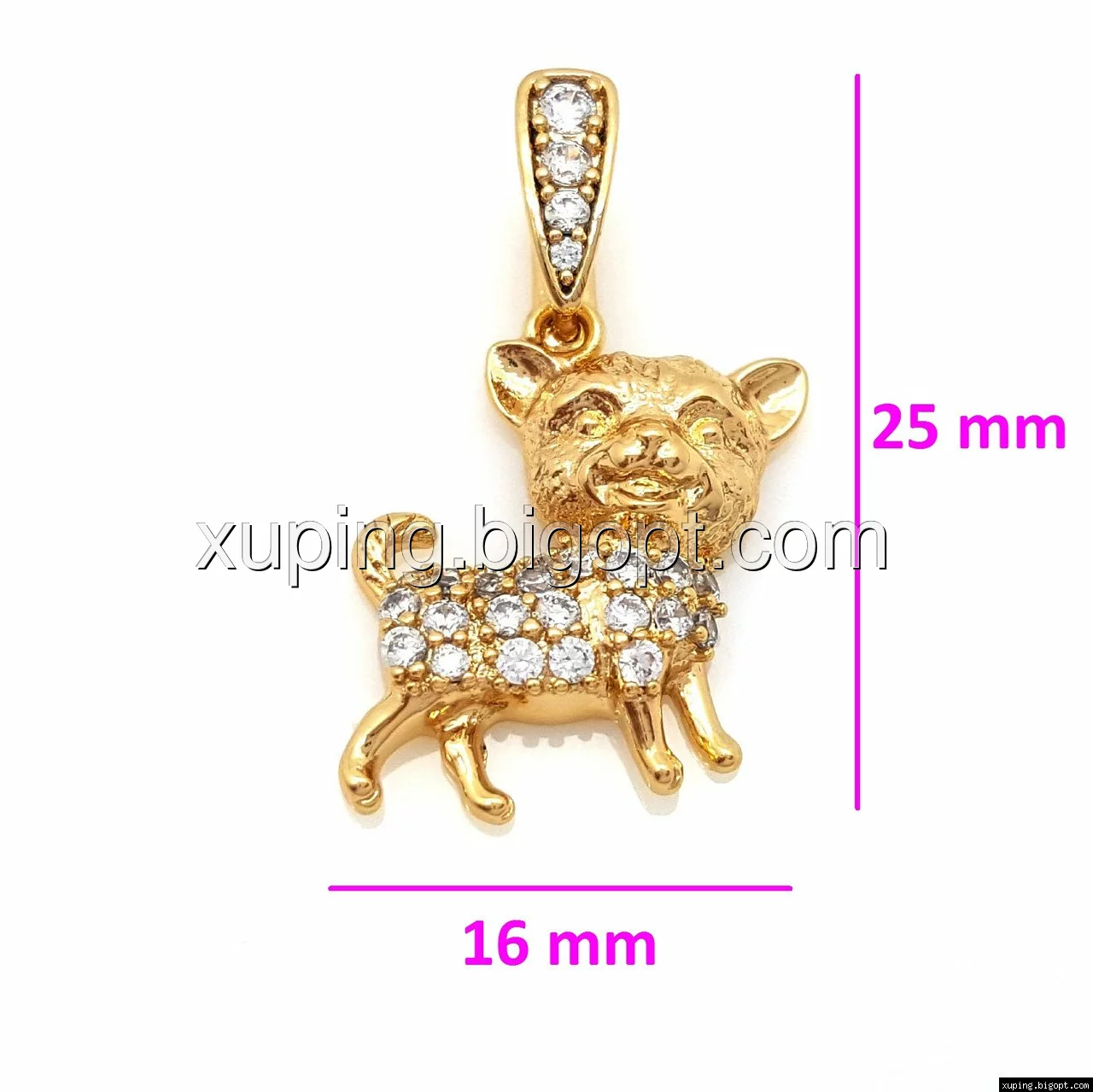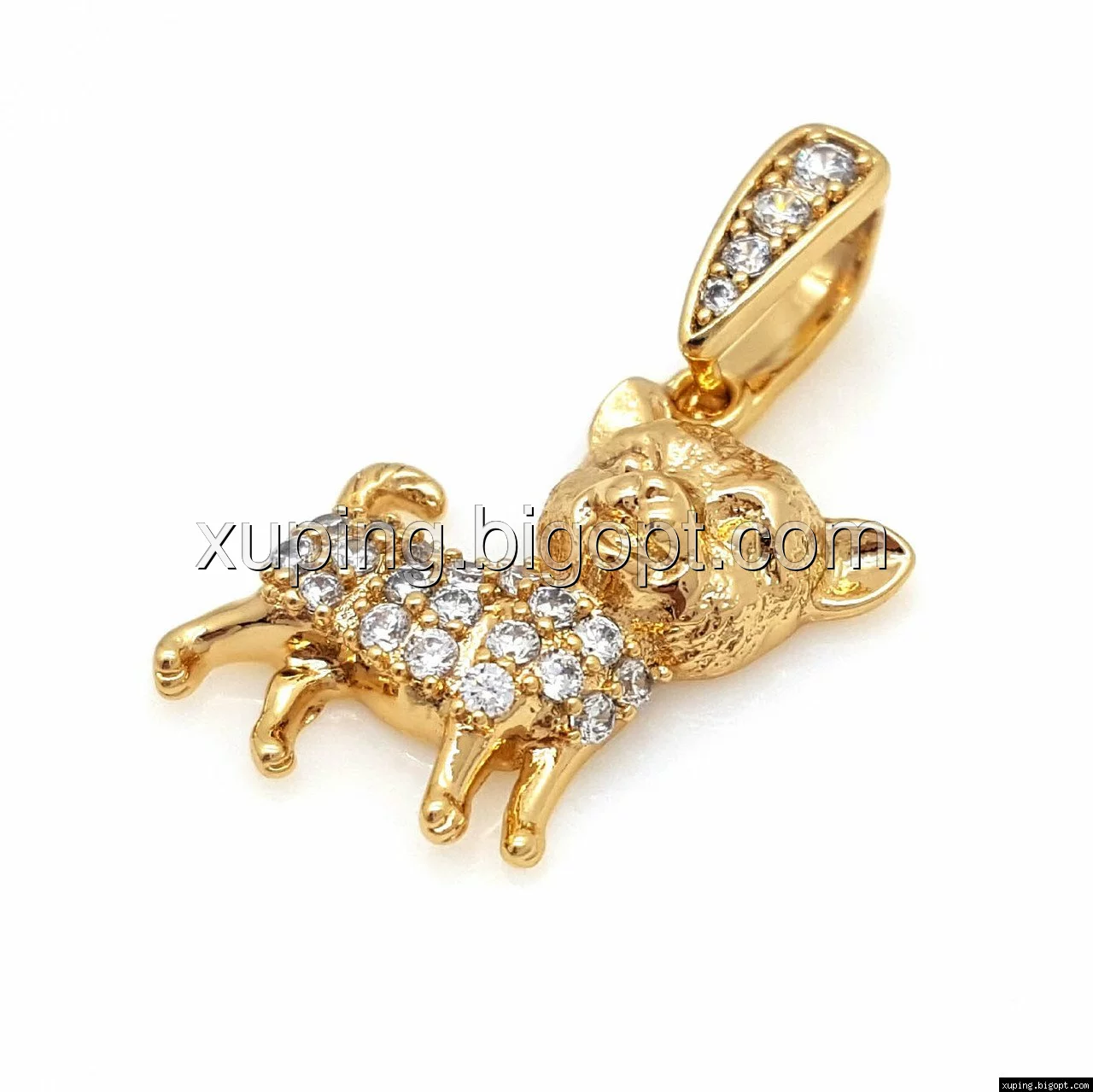 Кулон позолоченный, Собачка с камнями