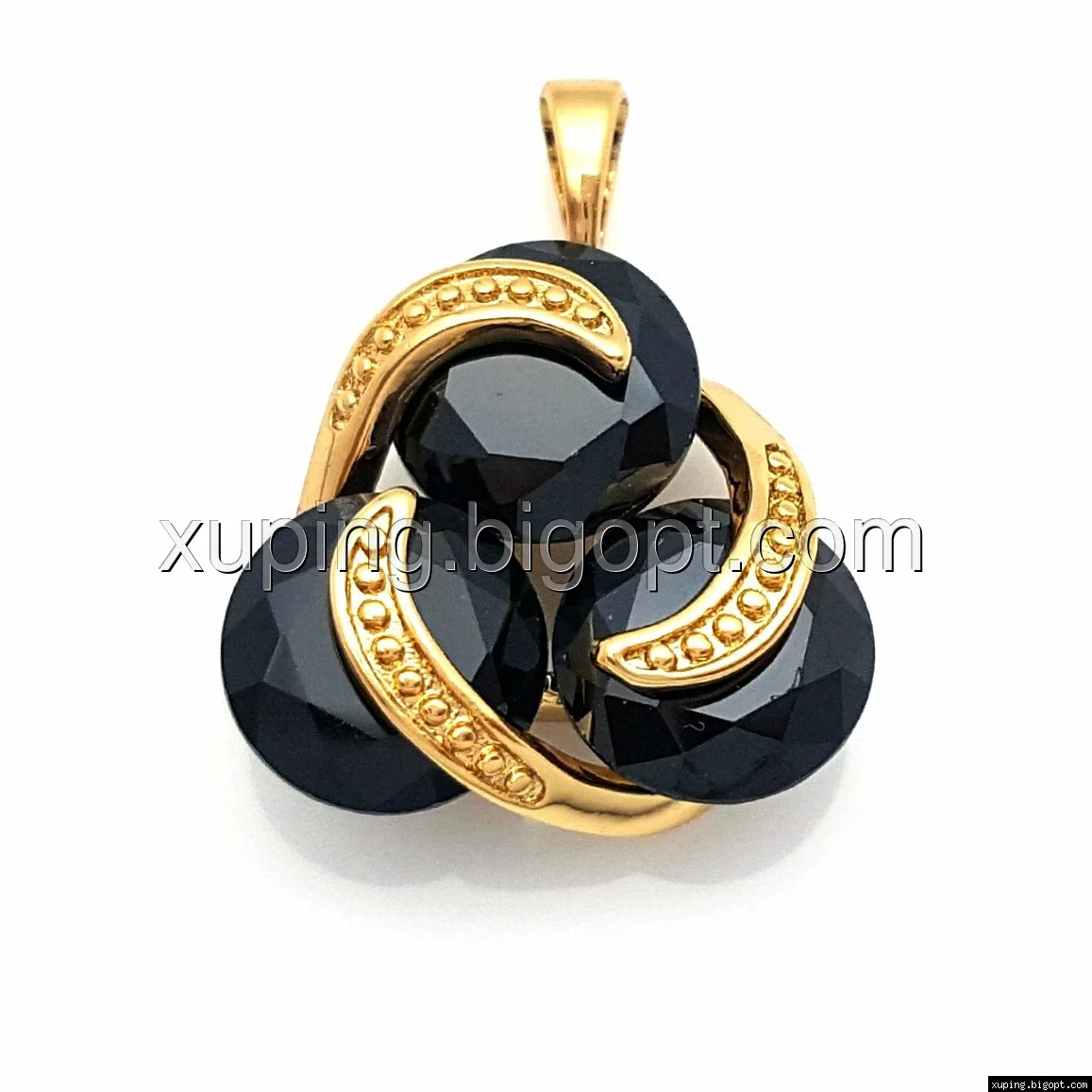 Кулон позолоченный, Три Черных циркония, Xuping