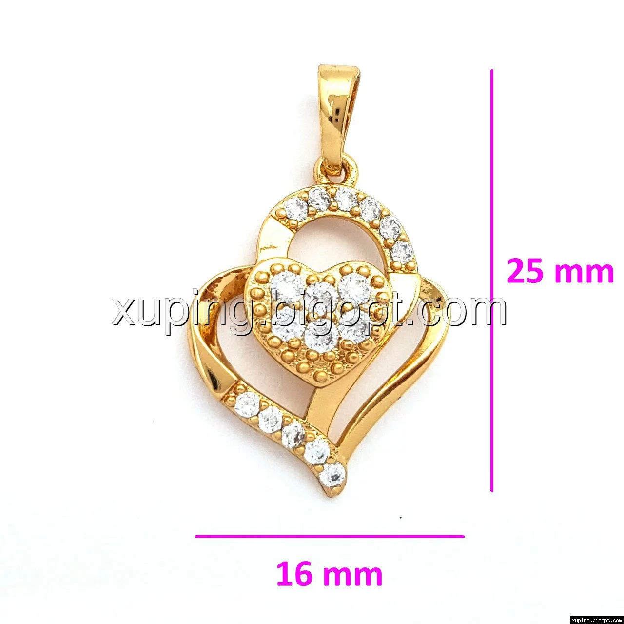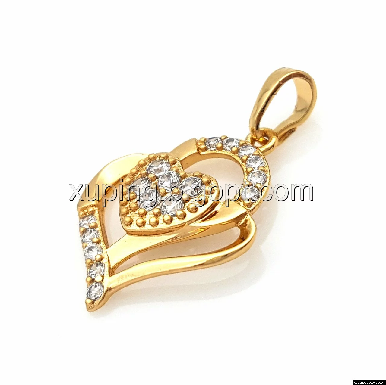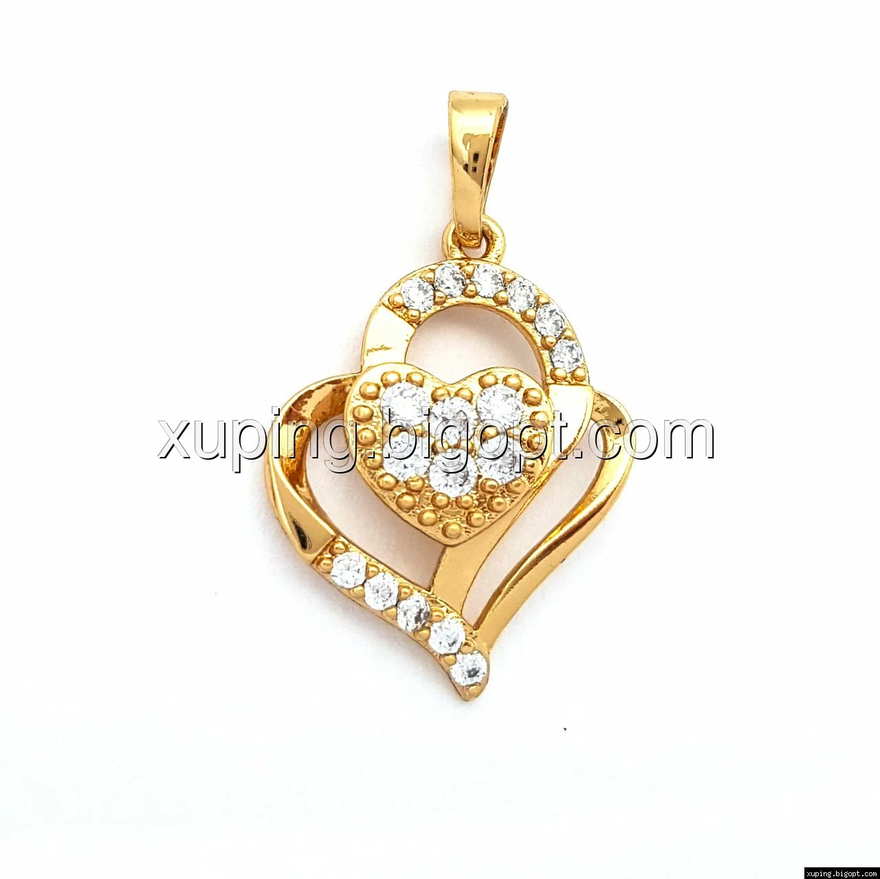 Кулон позолоченный, Два Сердца с камнями