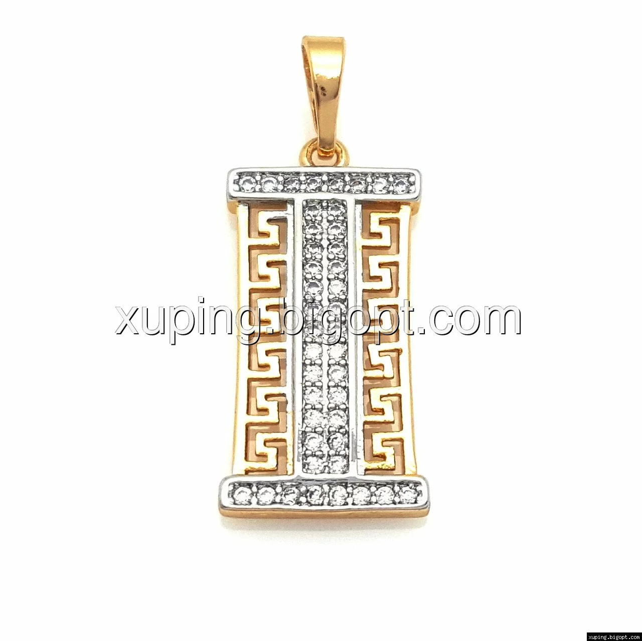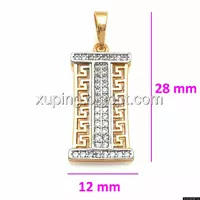 Кулон Прямоугольник с греческим узором, россыпь камней, позолота+родий