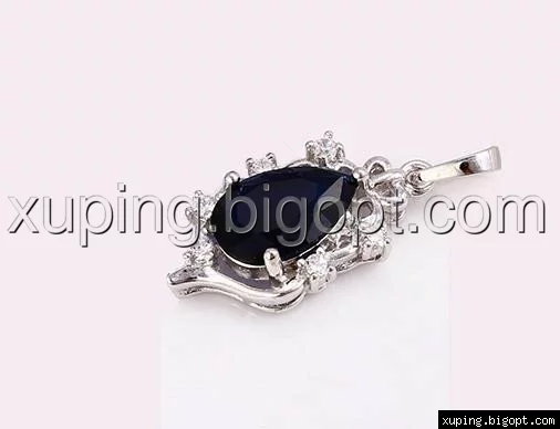 Кулон с темно синим цирконием, родий