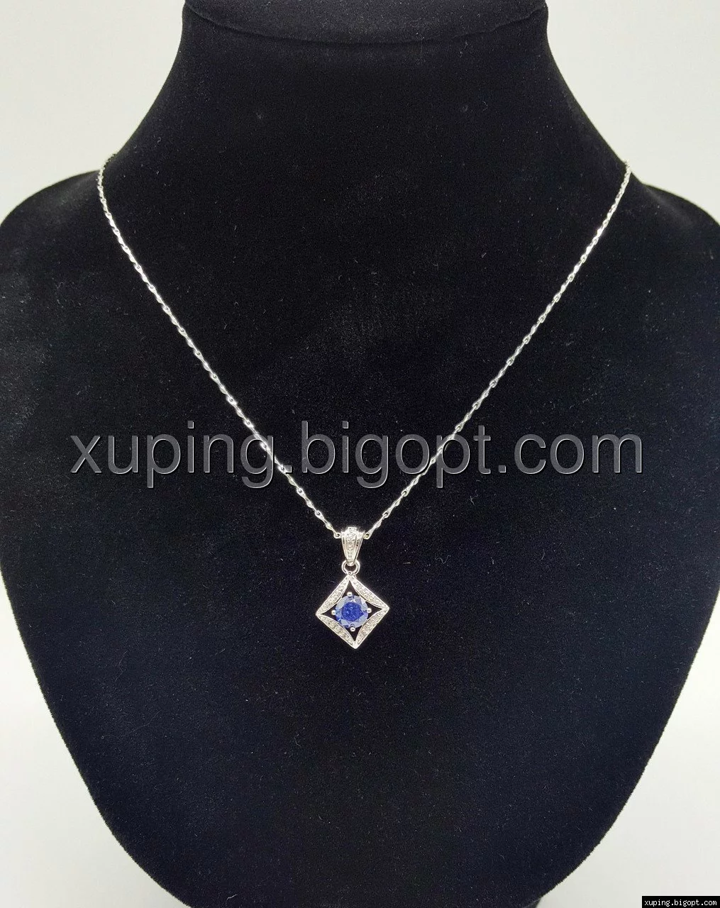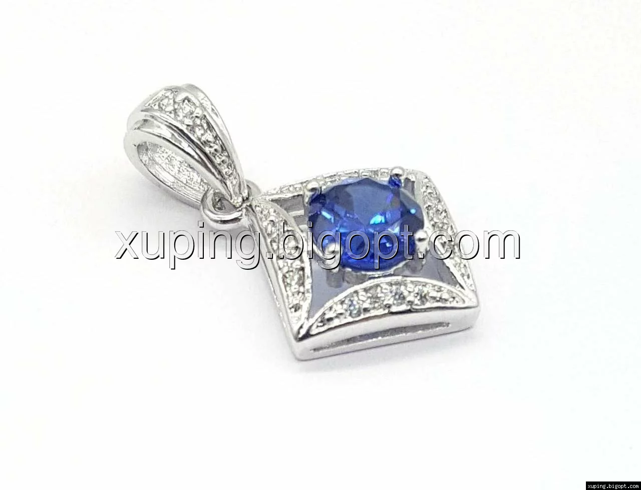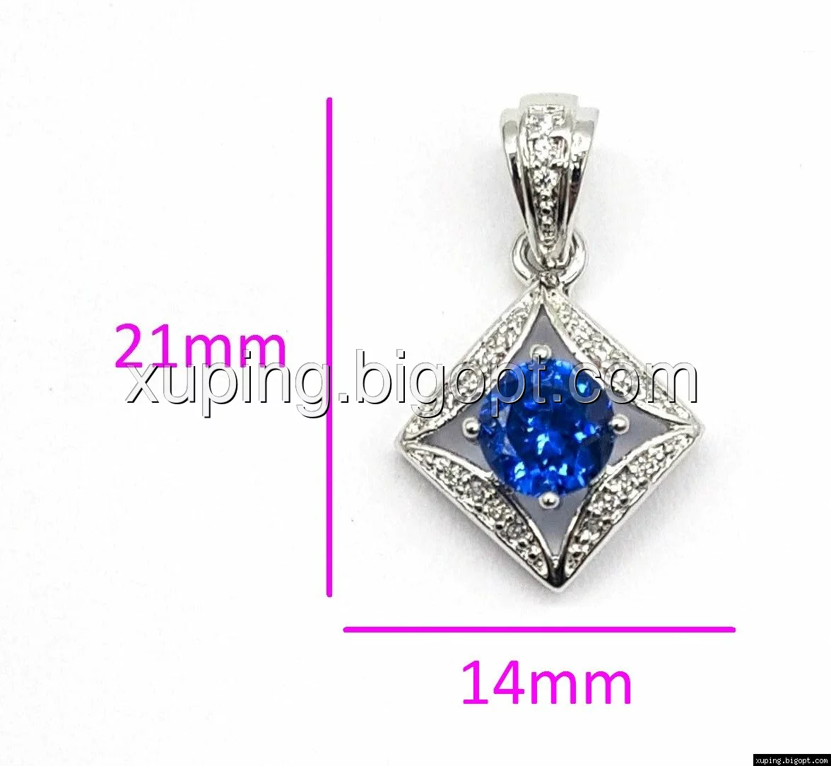 Кулон с синим цирконием, родий