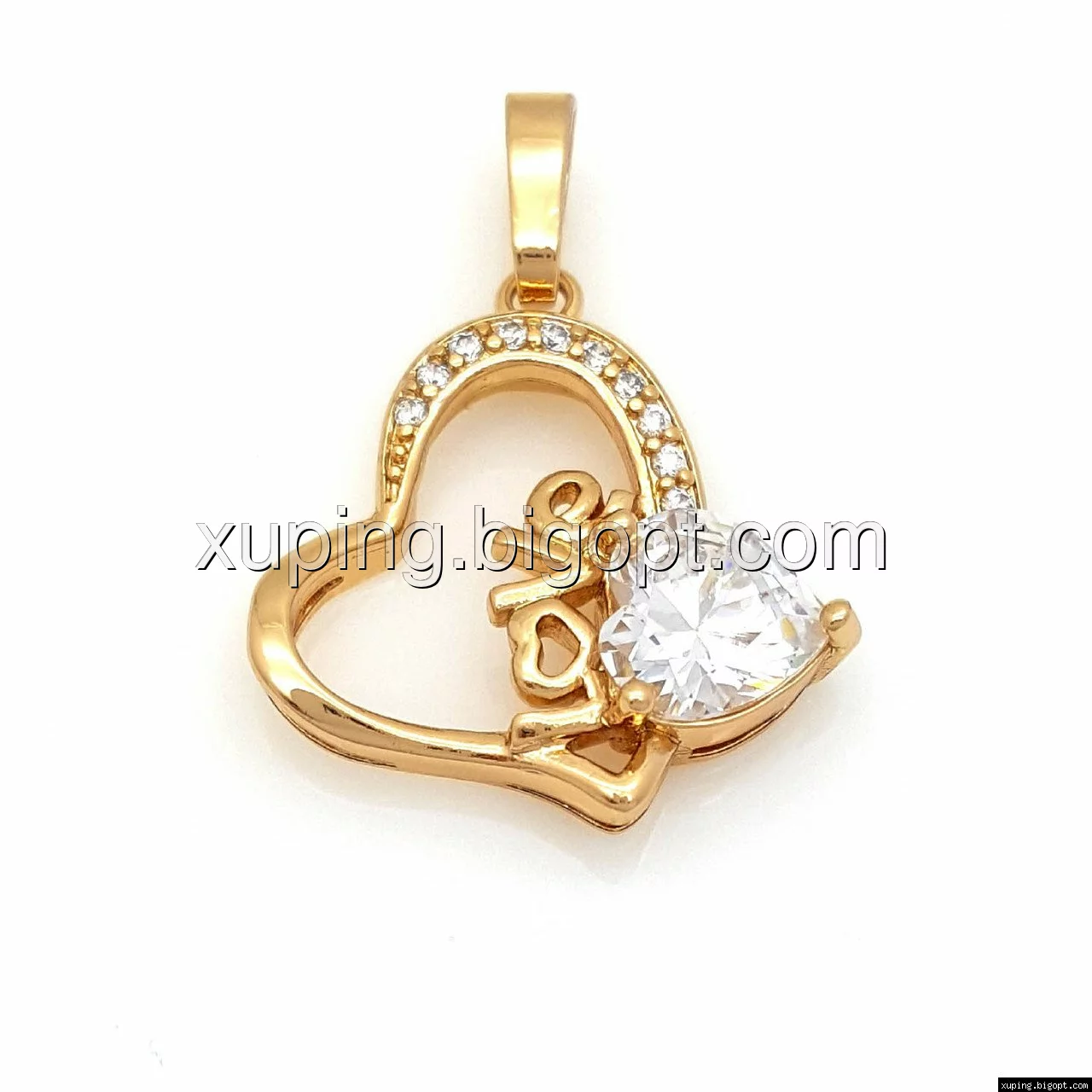 Кулон Сердце "Love", с цирконием, позолота