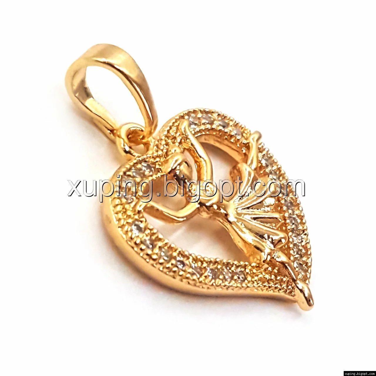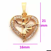 Кулон Сердце с балериной, россыпь циркония, позолота