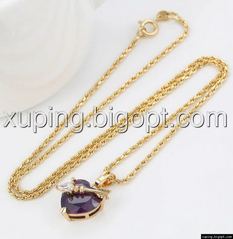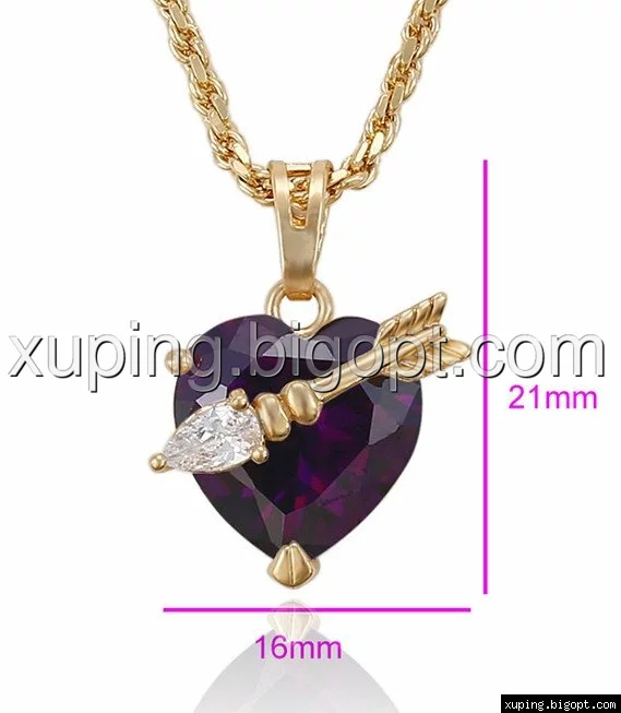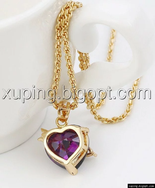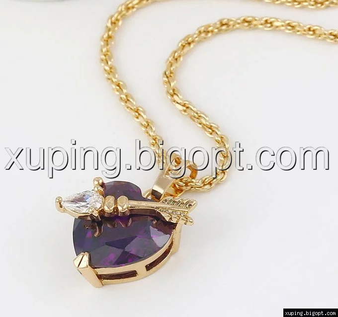 Кулон Сердце со стрелой, фиолетовый цирконий, позолота