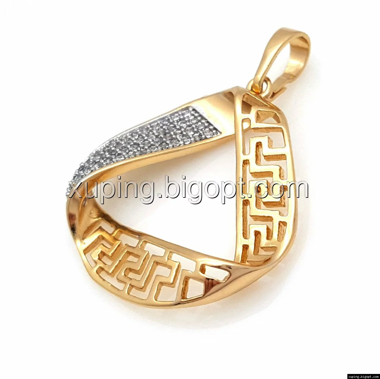 Кулон Треугольник, с греческим рисунком и камнями, позолота+родий Xuping