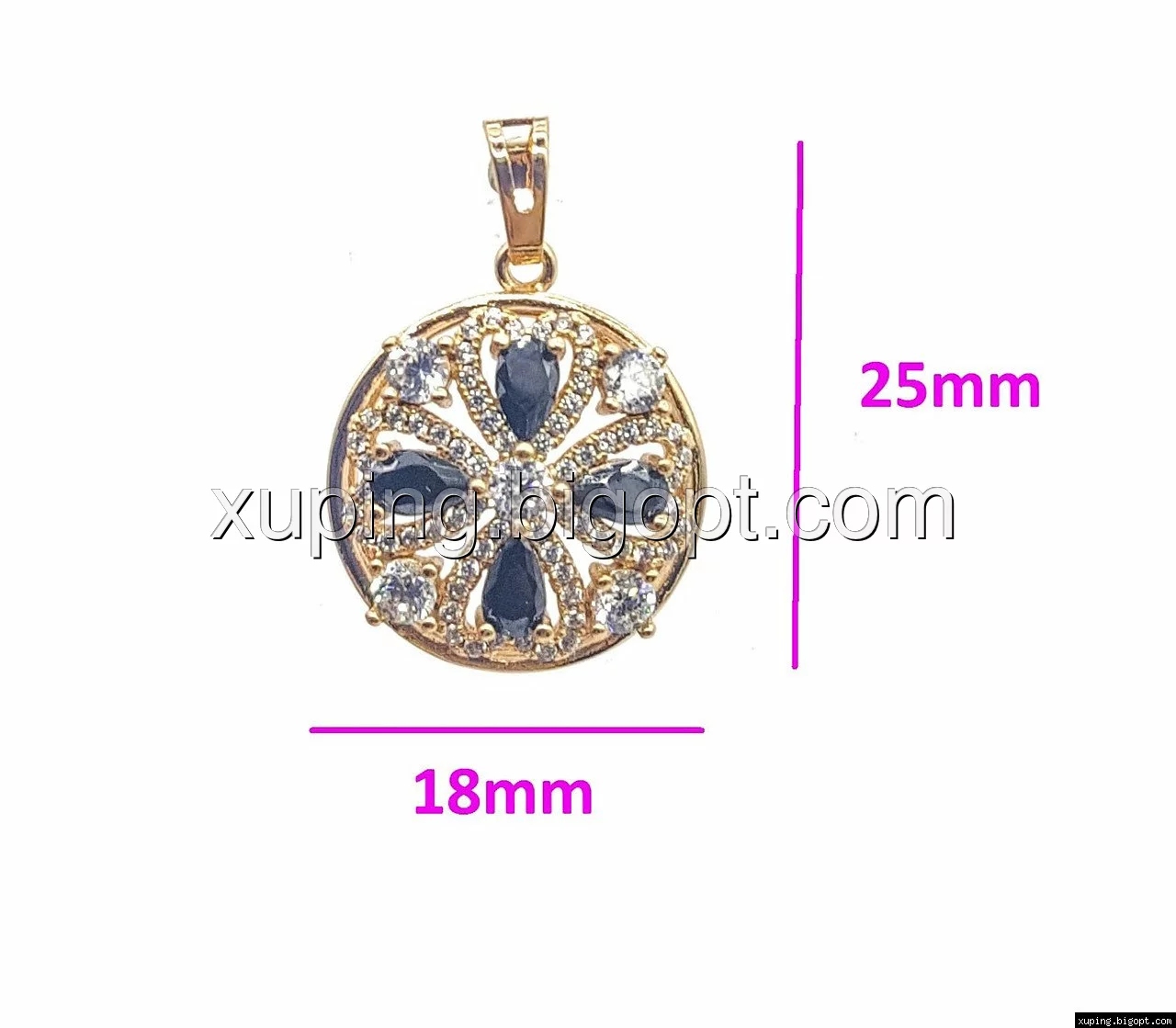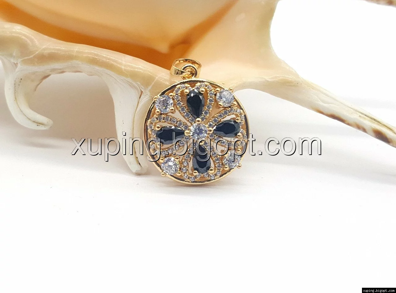 Кулон Цветок с черным цирконием, позолота, Xuping