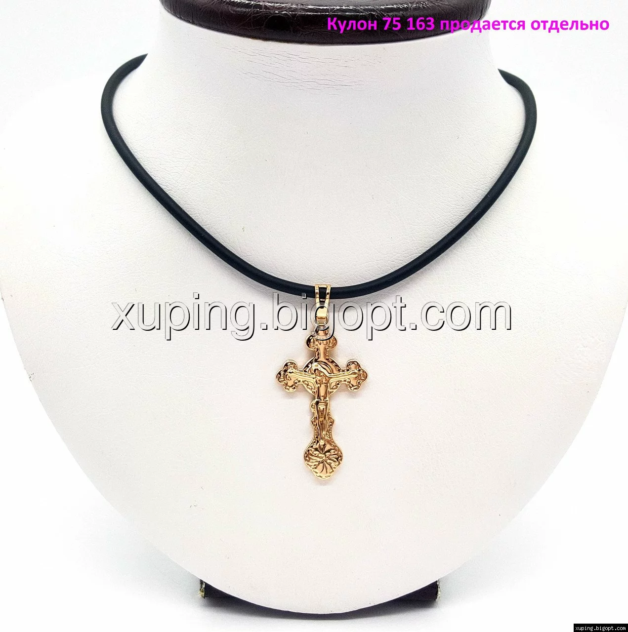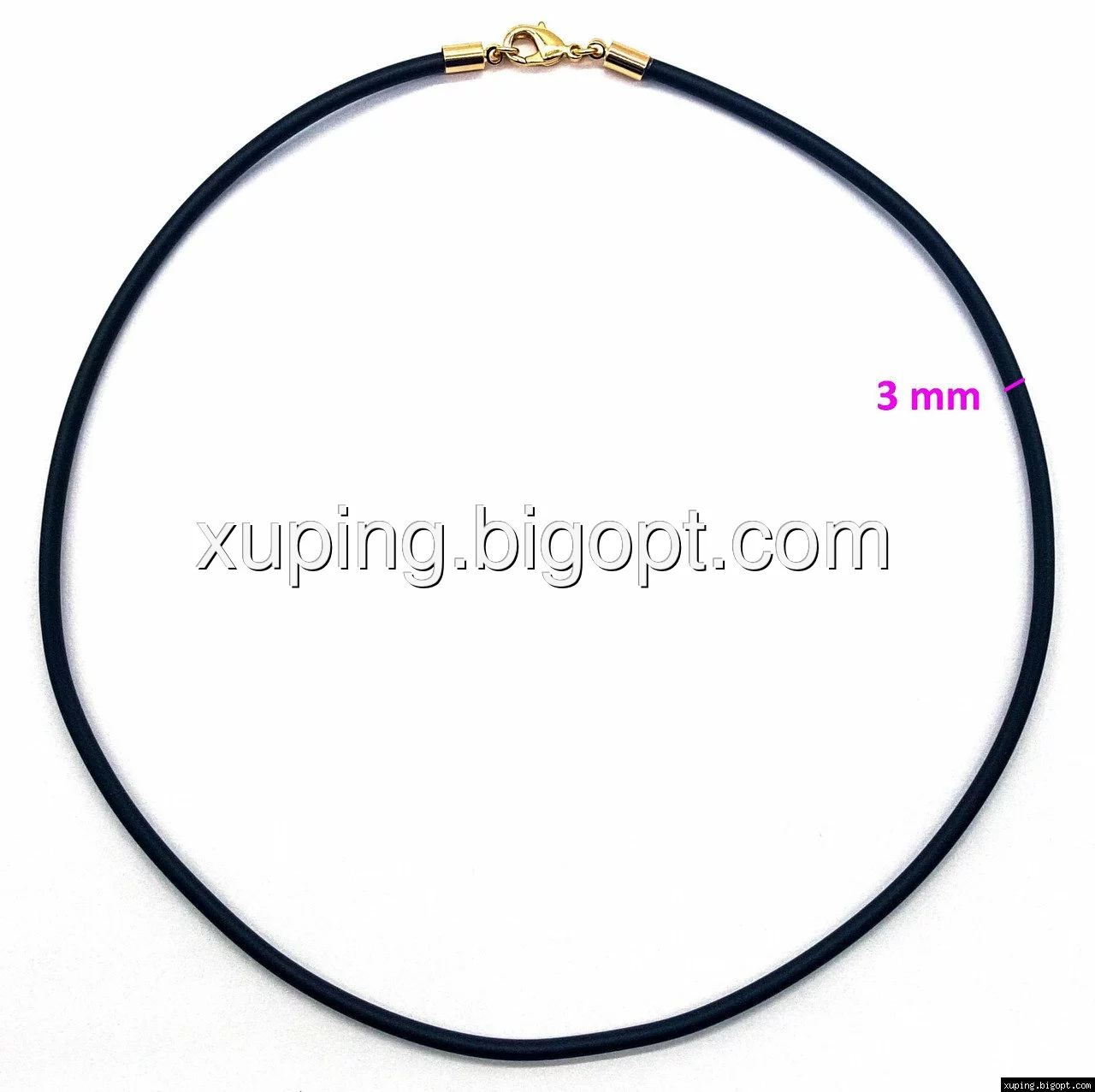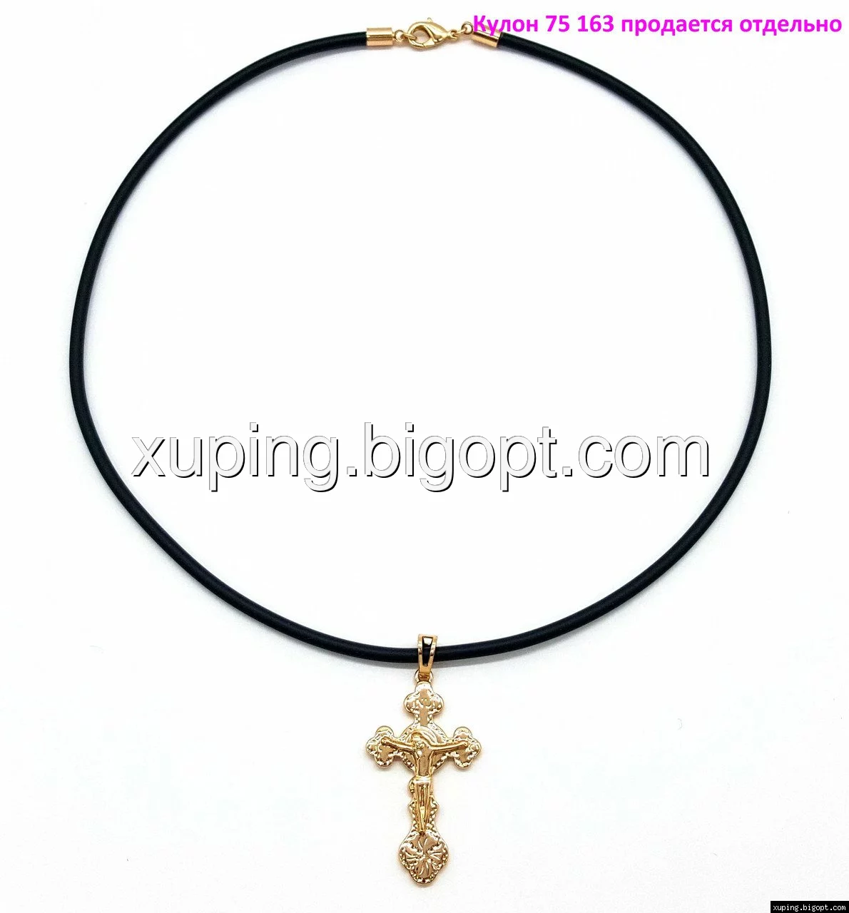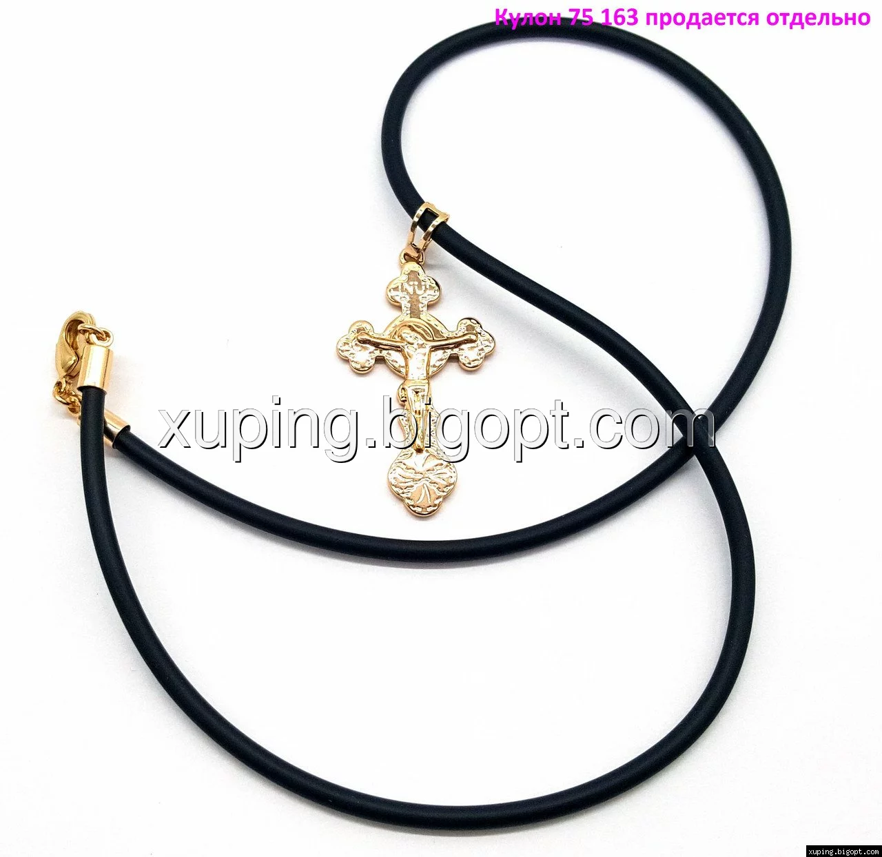 Черный каучуковый шнурок на шею выполнен из мягкого материала, с позолоченным карабином Xuping.