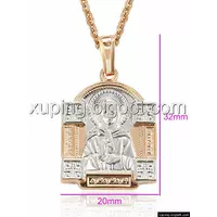 Кулон выполнен из медицинского сплава на основе латуни с добавлением легирующих элементов, с целью улучшения каких-либо его свойств, например коррозионной стойкости или прочности. Такой сплав не вызывает аллергии, не вступает в реакцию с потом человека, не меняет свои свойства под воздействием соленой воды и солнца. Поверхность изделия покрыта золотом 14 карата.
