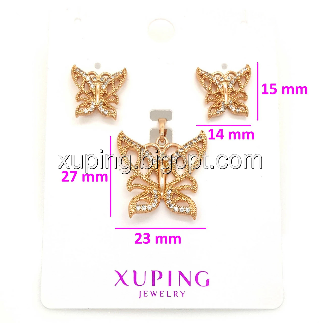 Набір "Ажурний Метелик", вставка цирконій, позолота Xuping