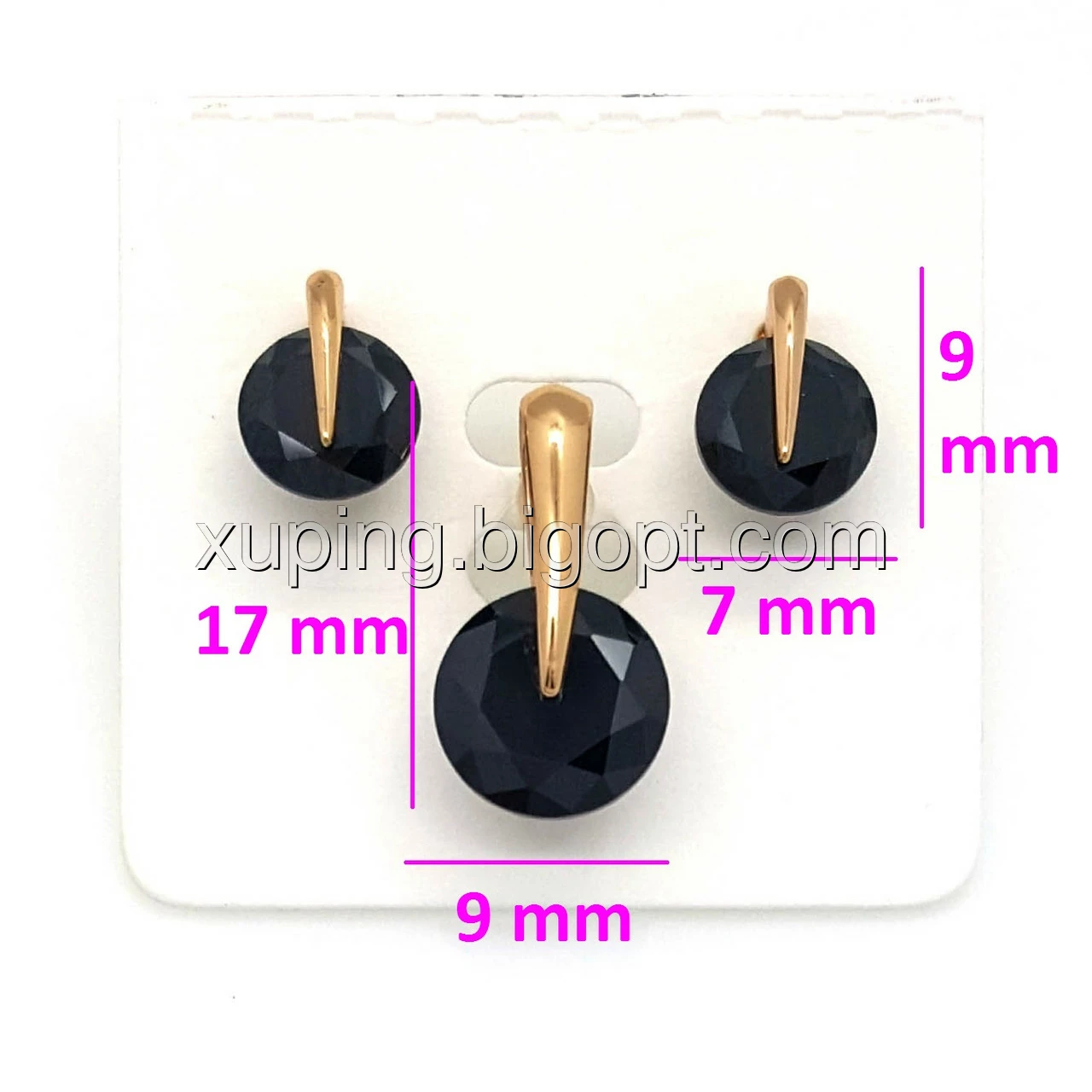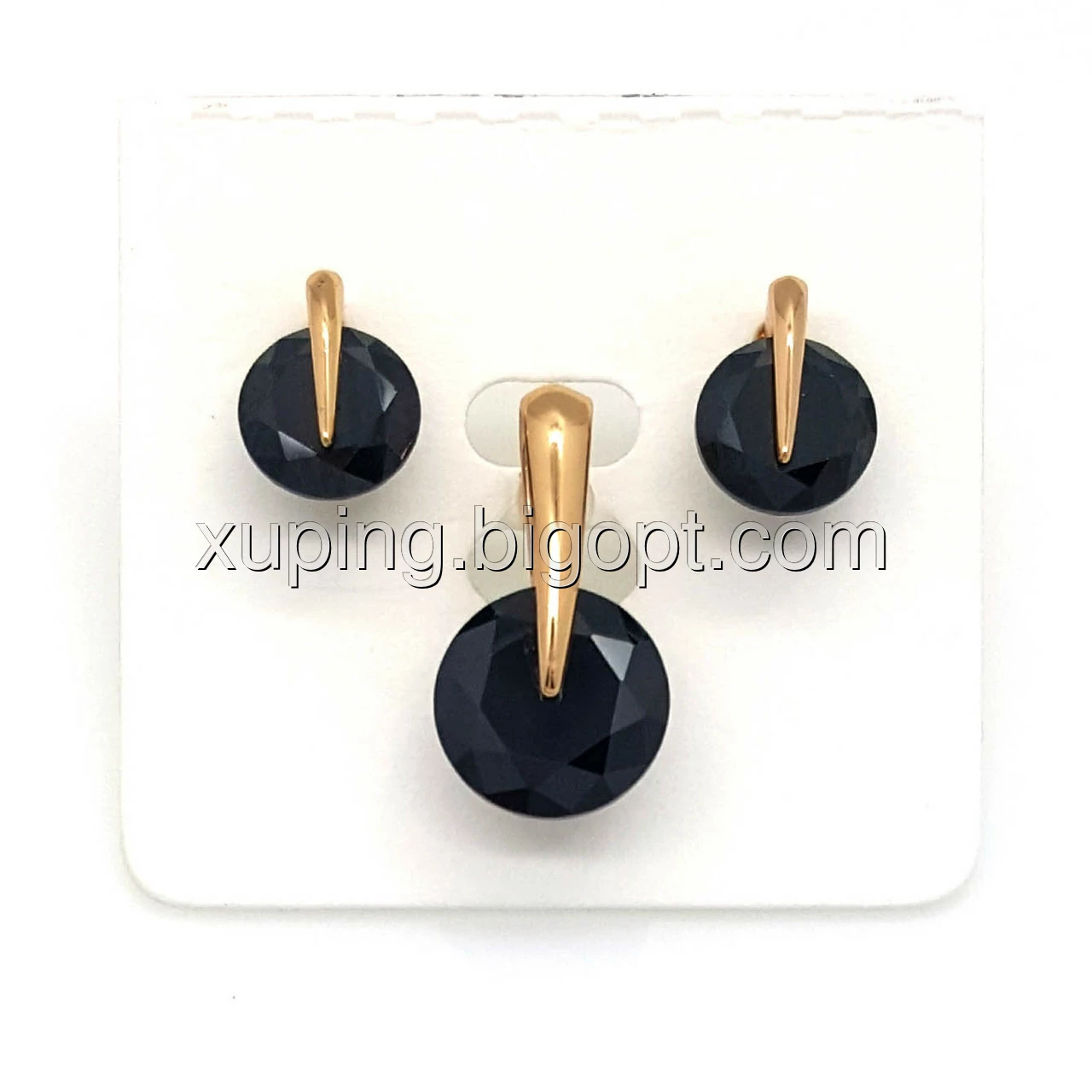 Набір "Чорний Кристал", вставка чорний цирконій, позолота Xuping