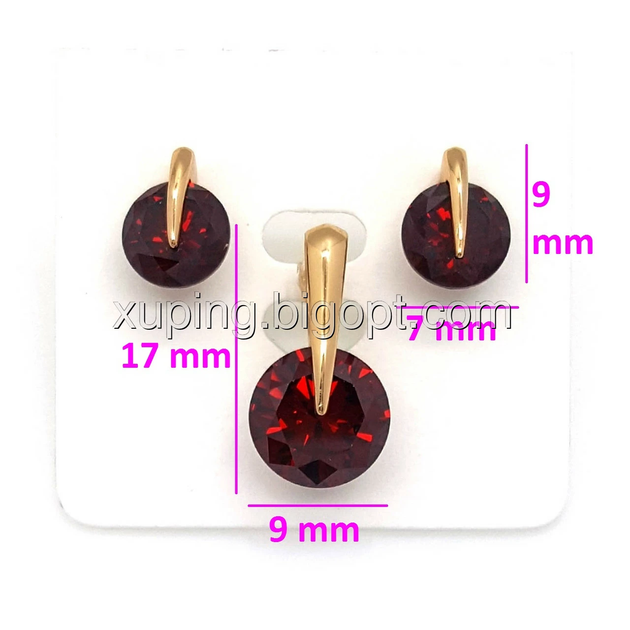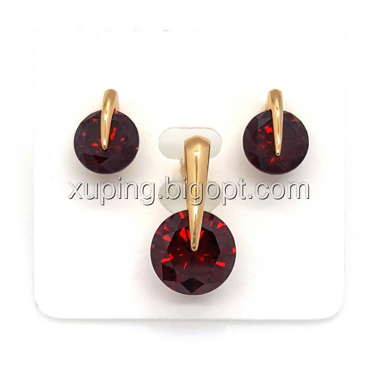 Набір "Червоний кристал", вставка червоний цирконій, позолота Xuping