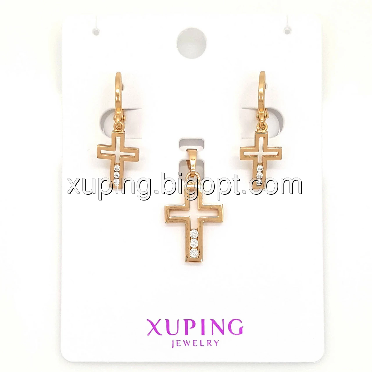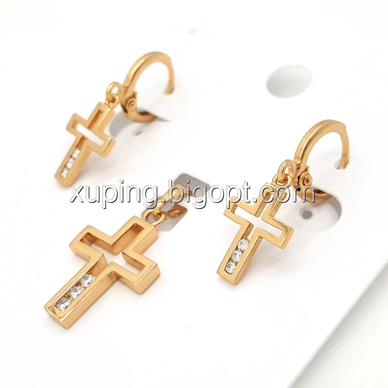 Набір "Хрест", вставка цирконій, позолота Xuping