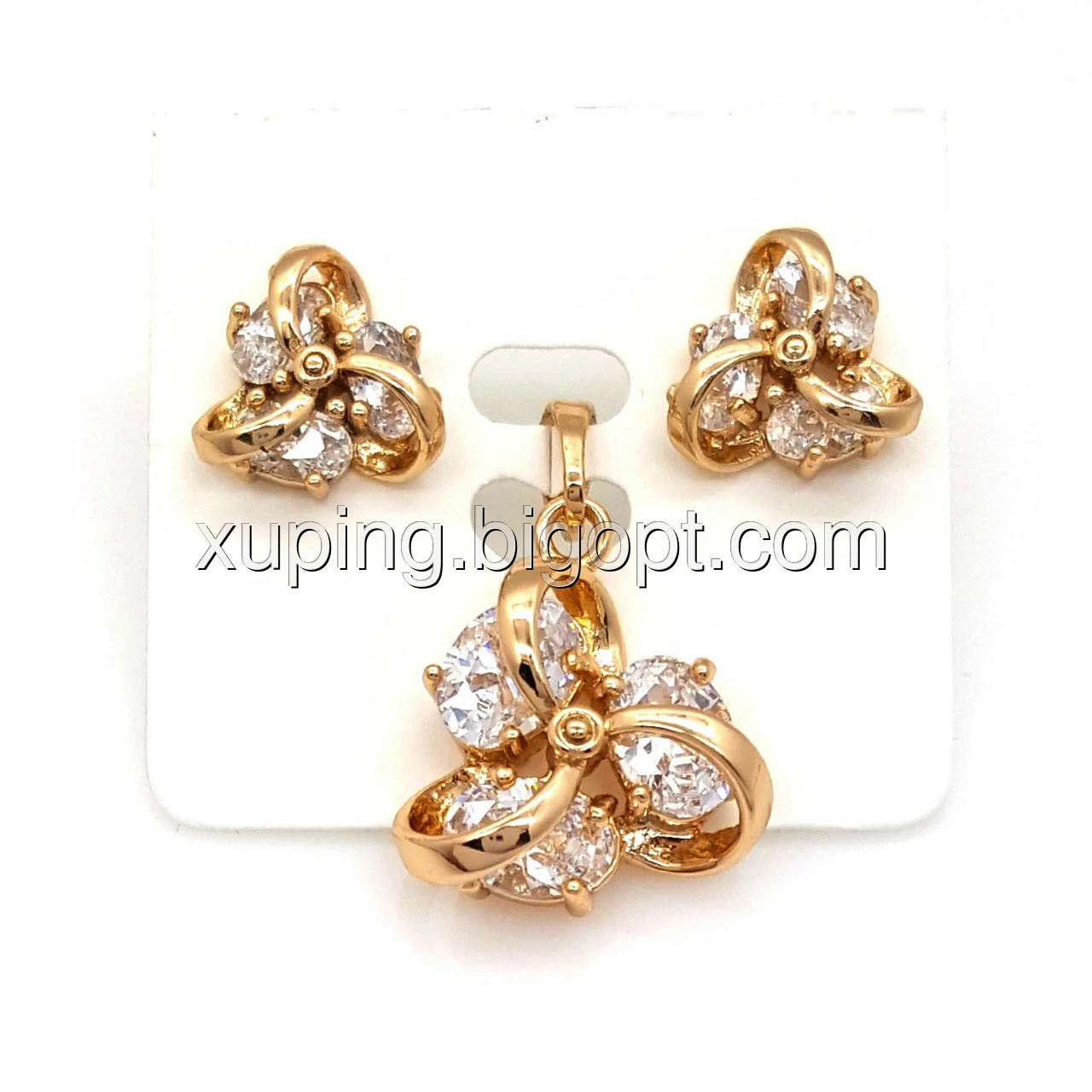 Набір "Трилисник", з камінцями позолота Xuping