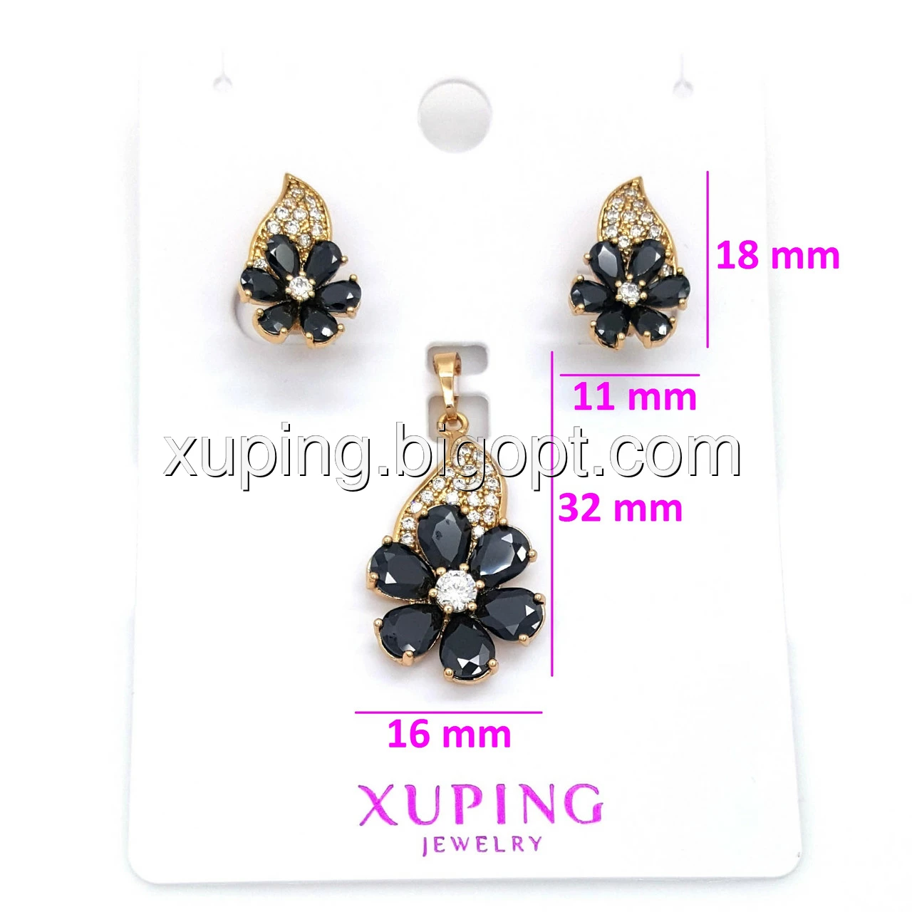 Набір Квітковий, з чорним цирконієм, позолота Xuping
