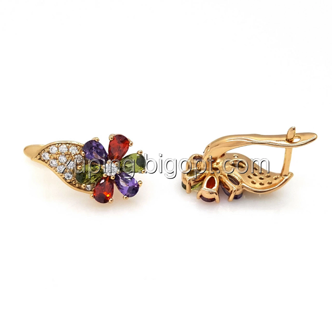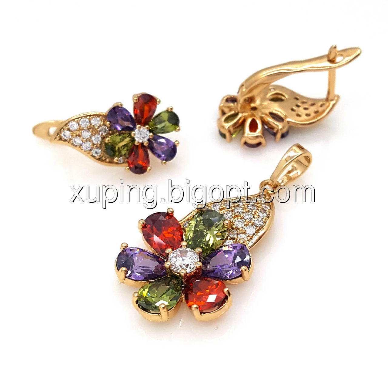 Набір, Квітковий з різнобарвним цирконієм, позолота Xuping
