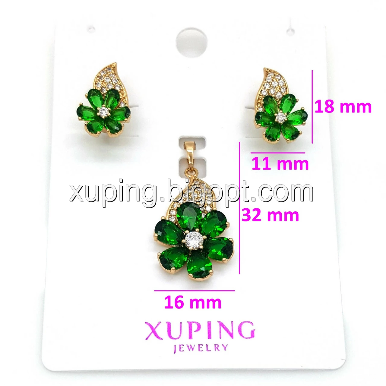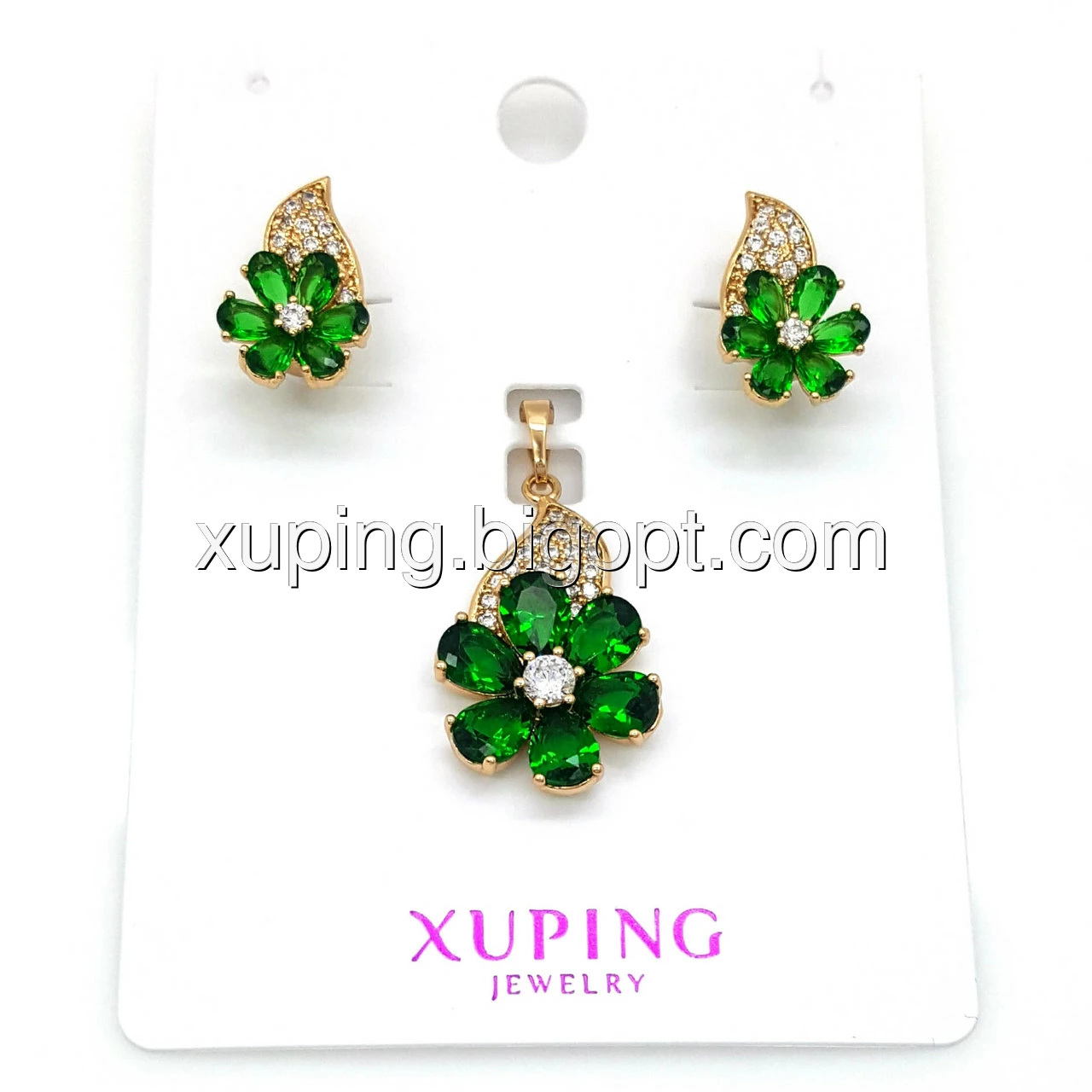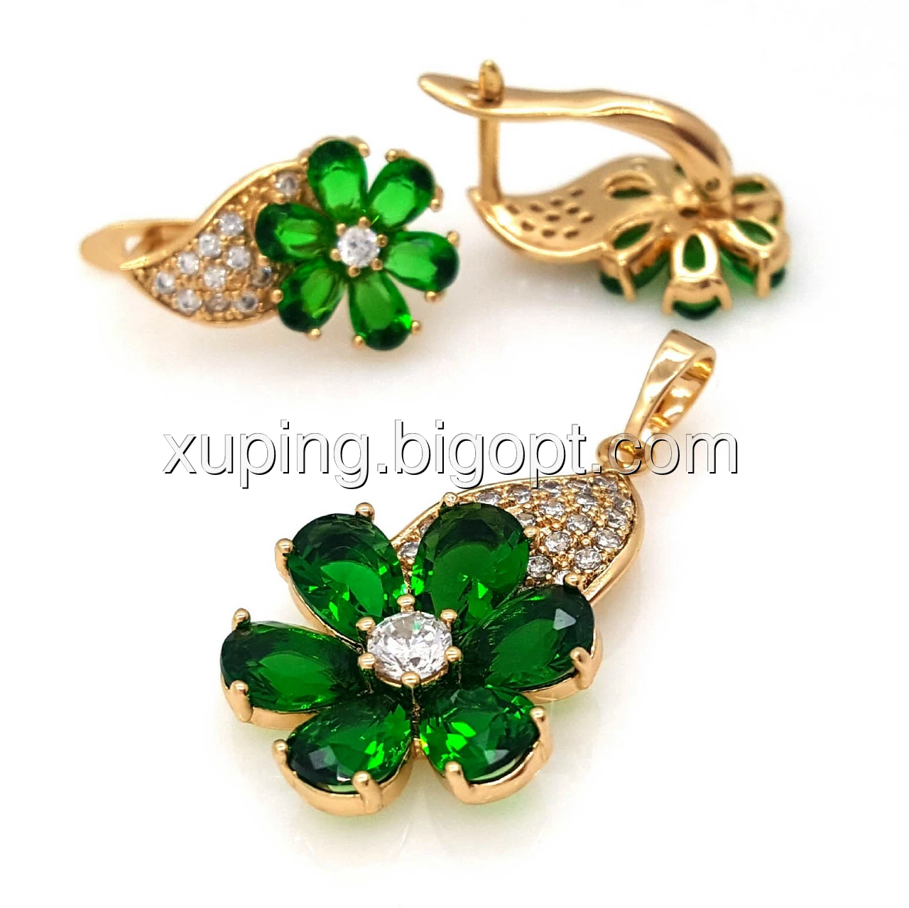 Набір Квітковий з зеленим цирконієм, позолота Xuping
