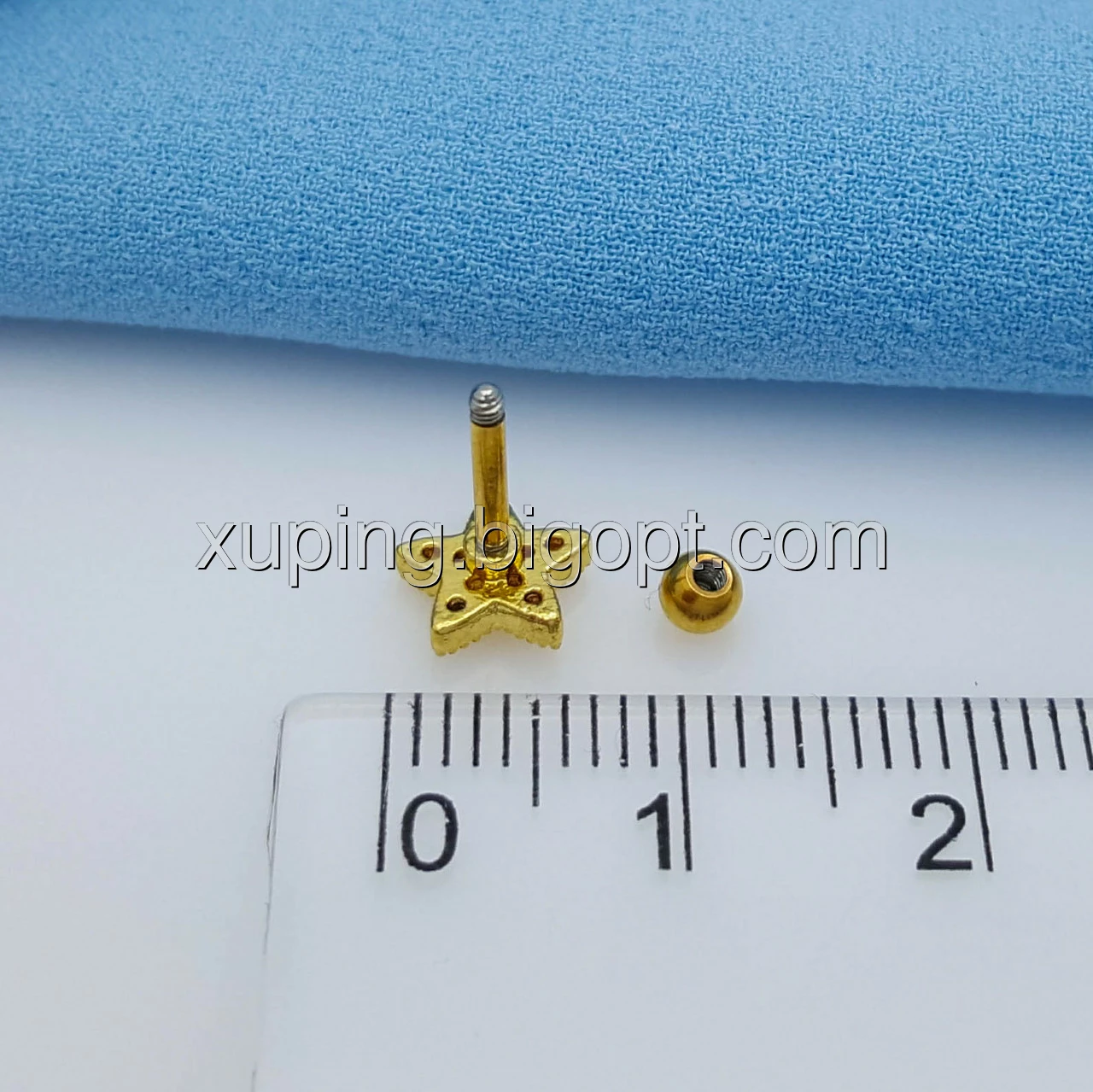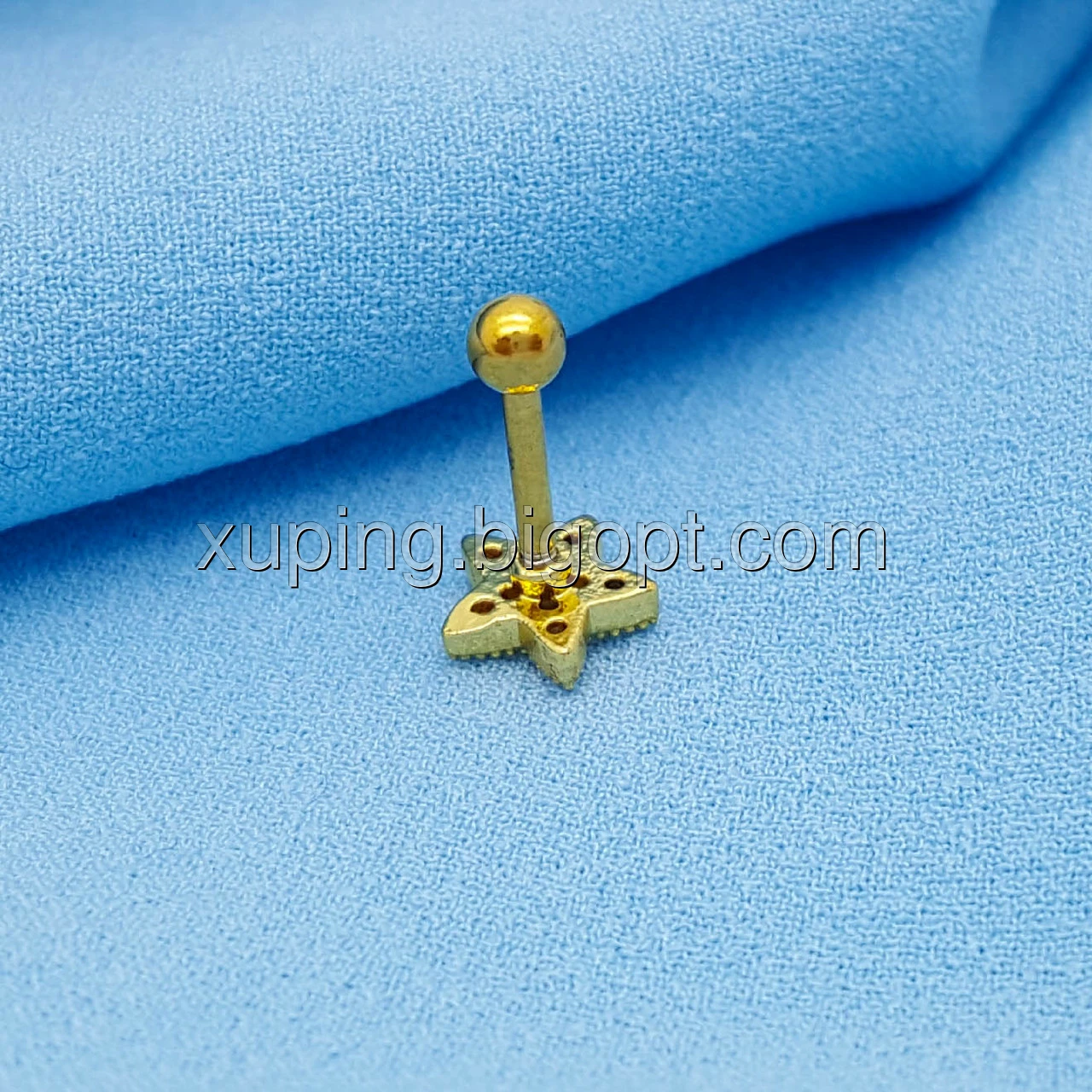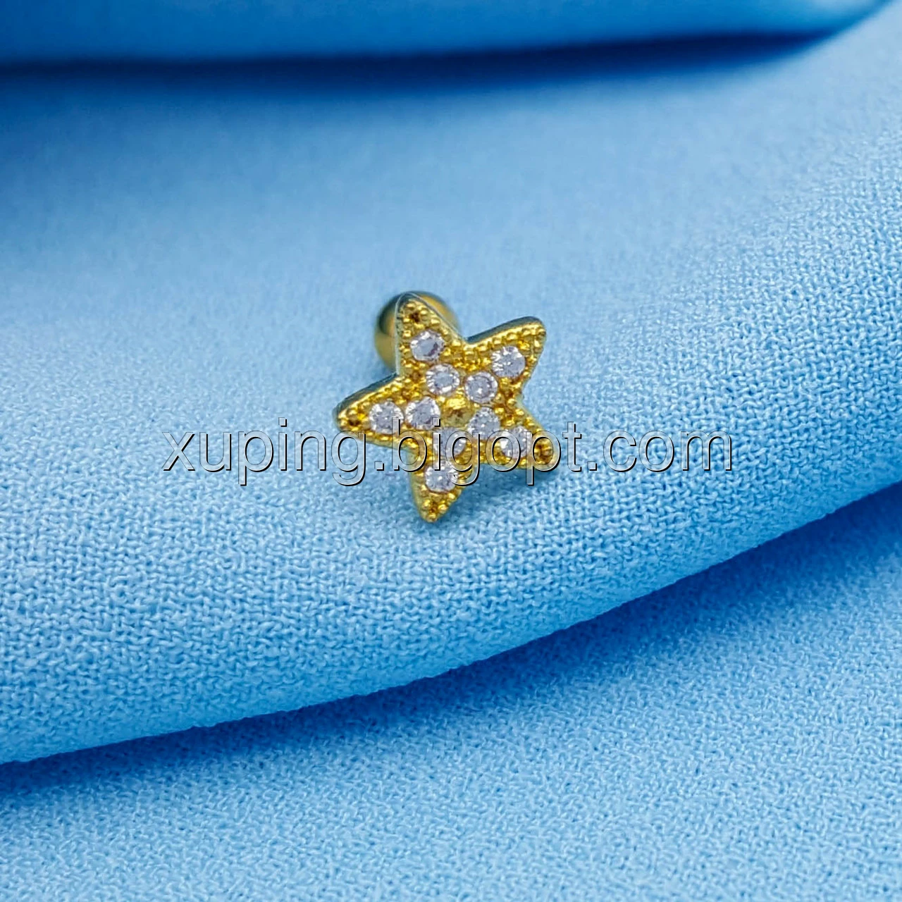 Пірсинг Зірка з камінчиками, на закруточці, під золото, дизайнерський