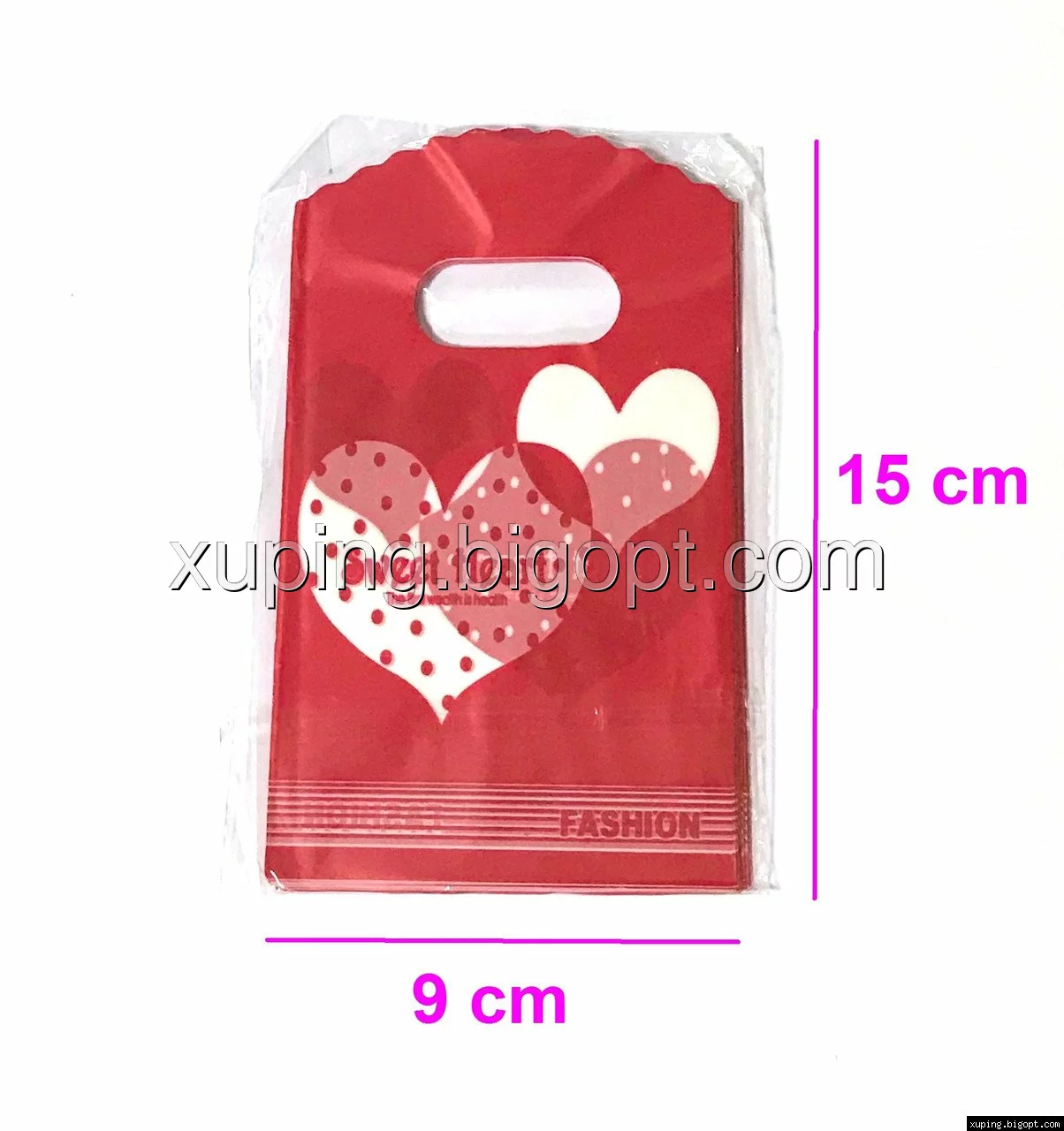 Подарочные Пакеты, 9см*15см, (50 шт.), Двухсторонние Сердца, красные