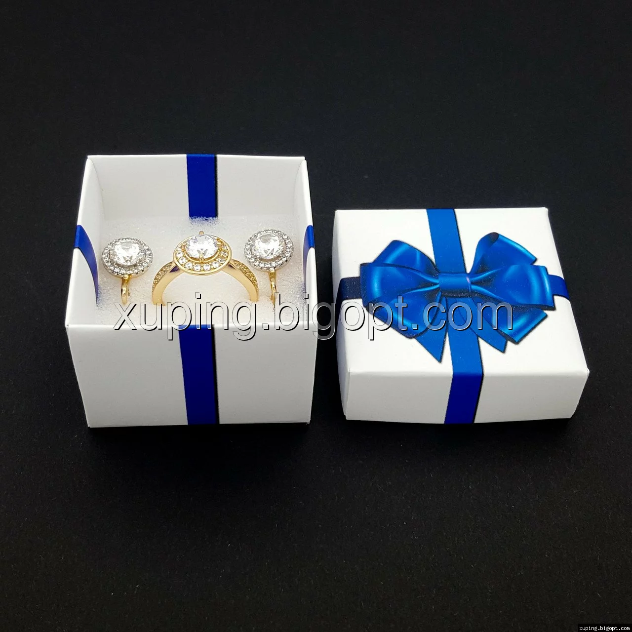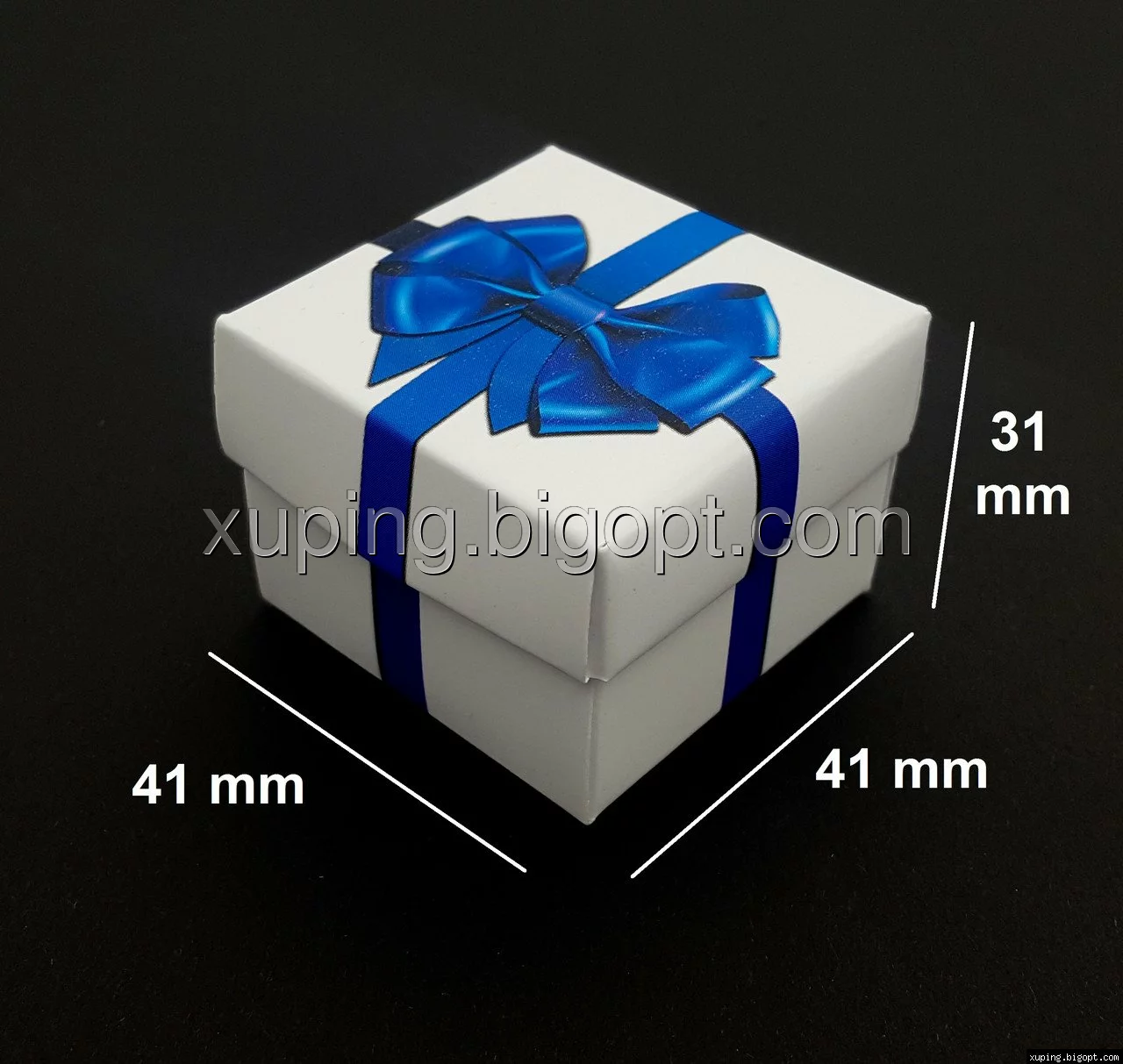 Подарочная коробочка, белая с Синим Бантом, для колец и сережек