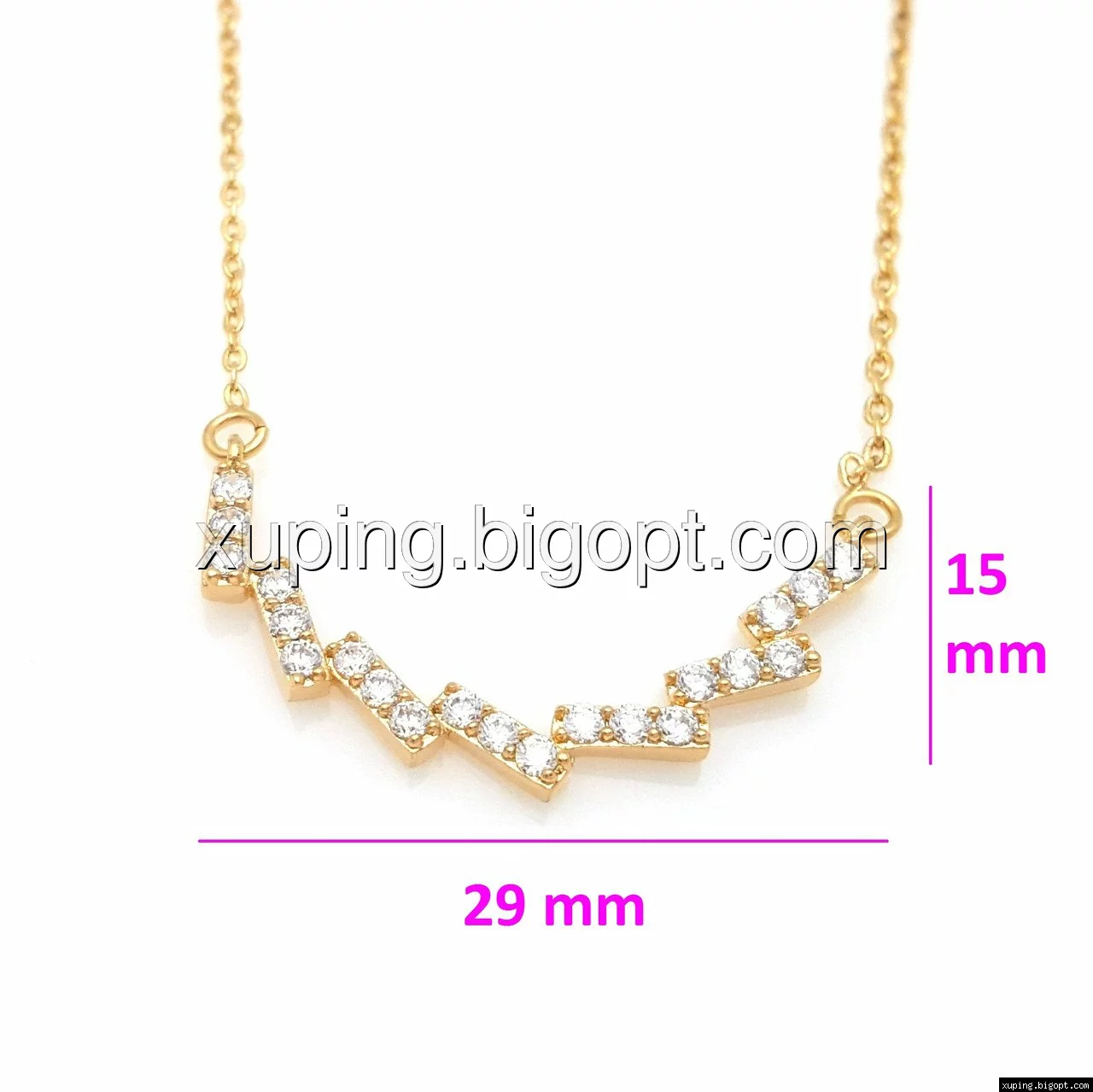 Подвеска 73145, Зигзаг, с россыпью камней, р.44-47, позолота Xuping
