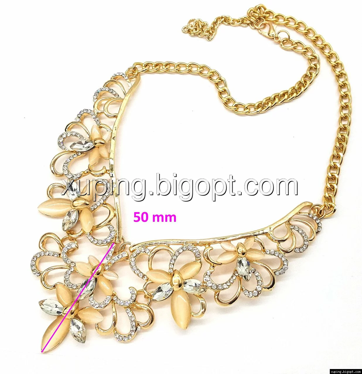 Подвеска Ажурная, с нежно-бежевыми камнями, р.40-50