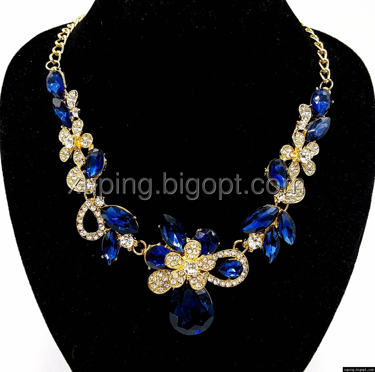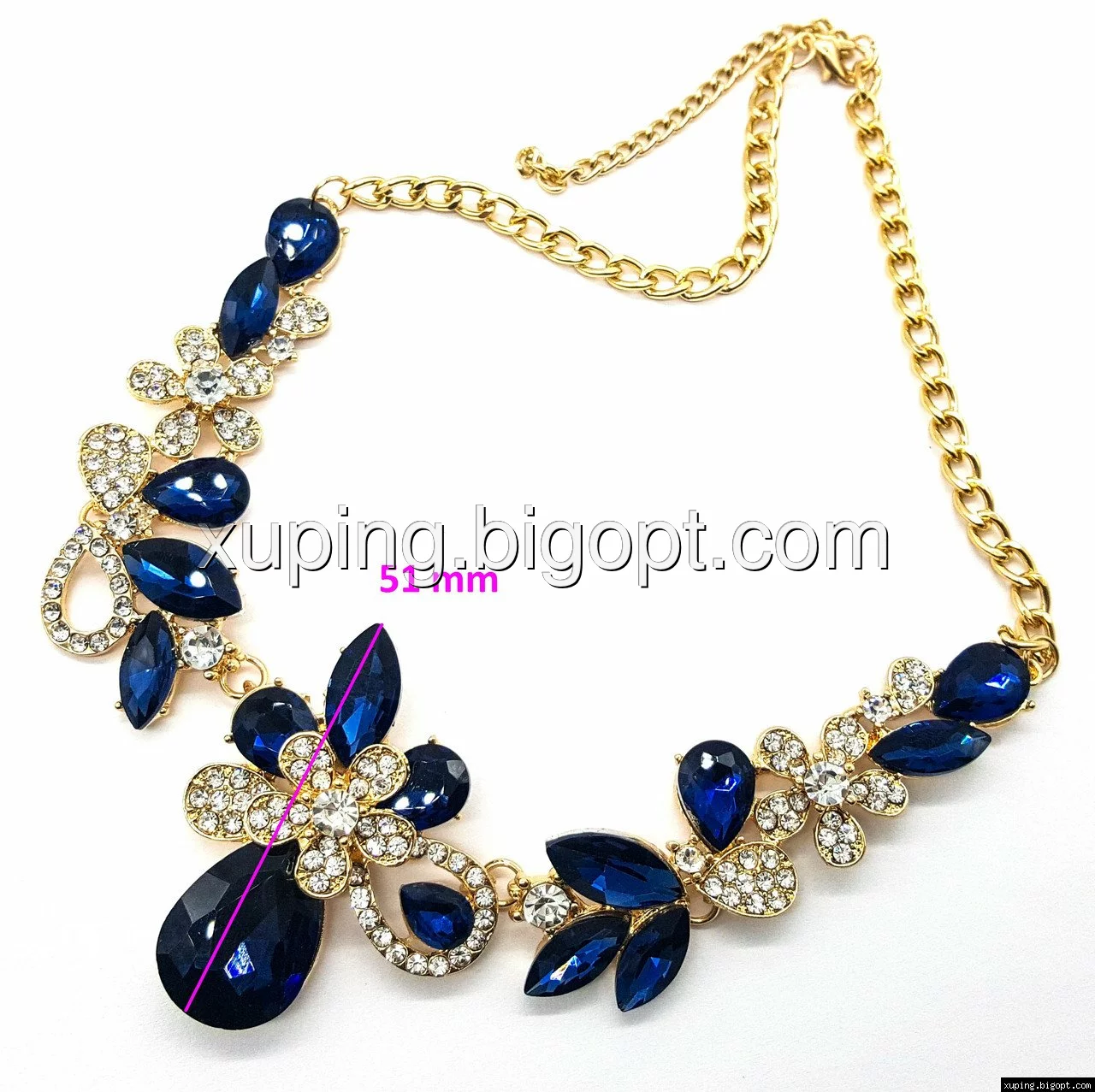Подвеска нарядная, Три Цветка, с синими камнями, р.40-50
