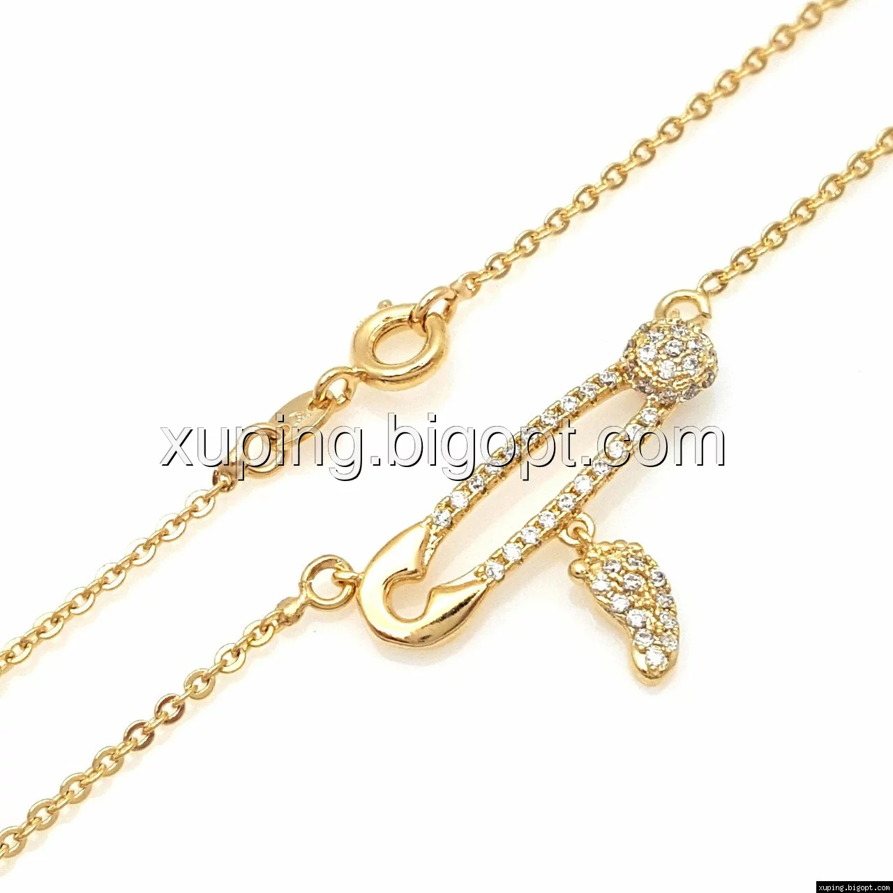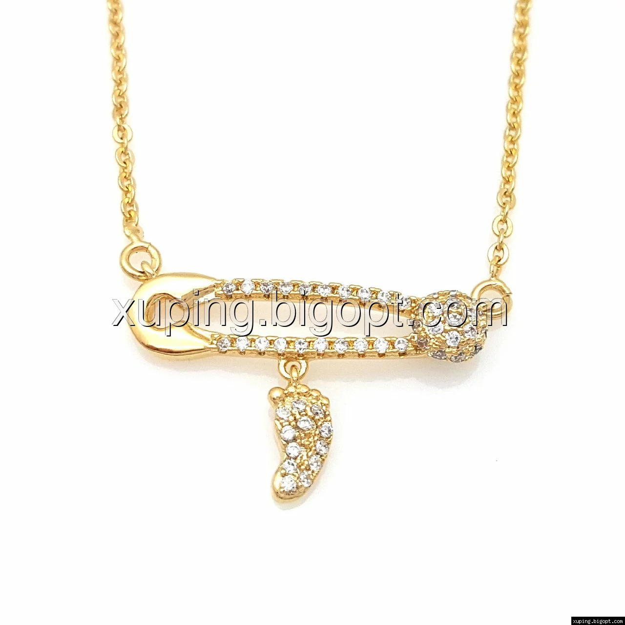 Подвеска позолота Xuping 73157, Булавка со Стопой, россыпь камней, р.45