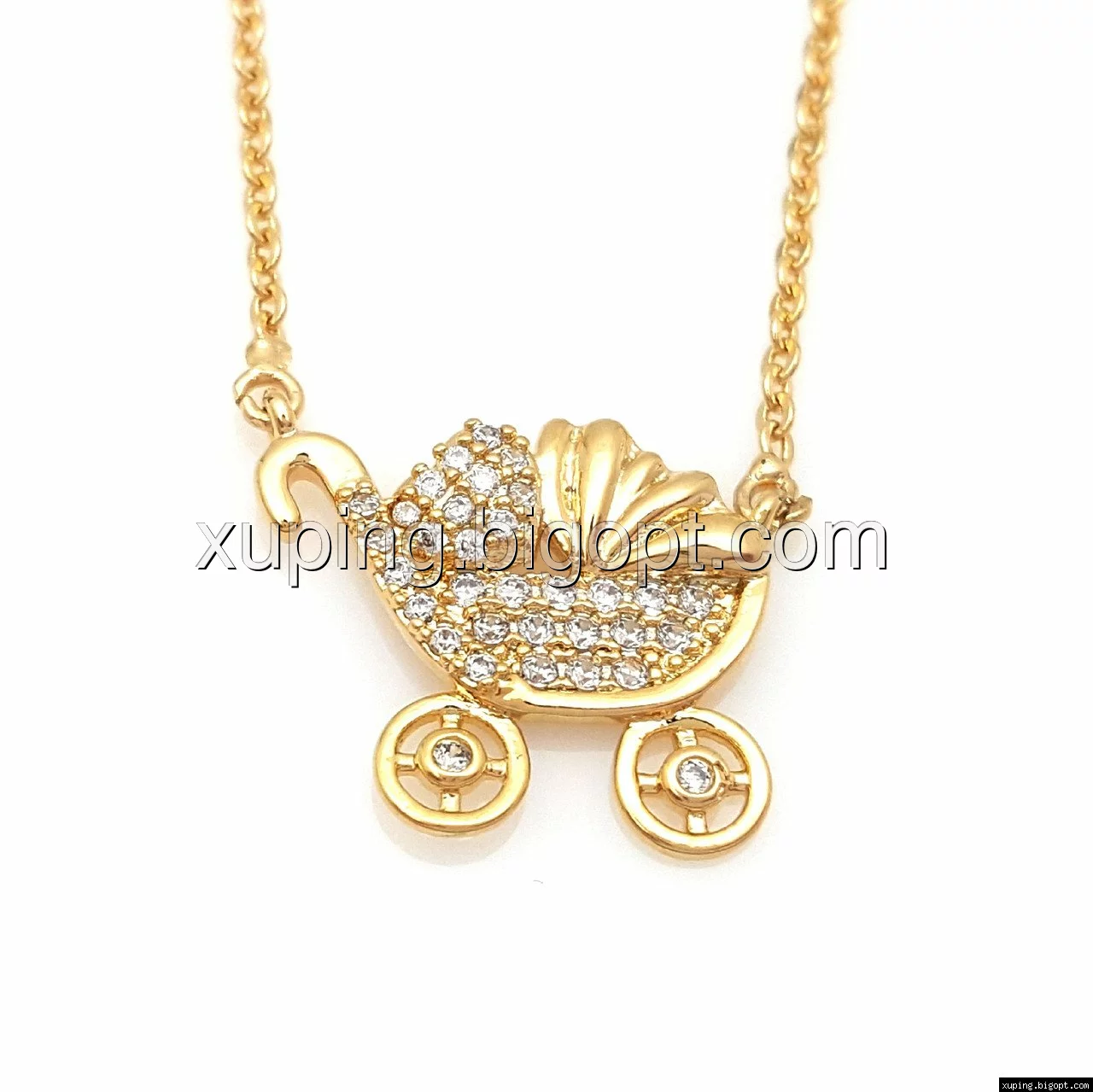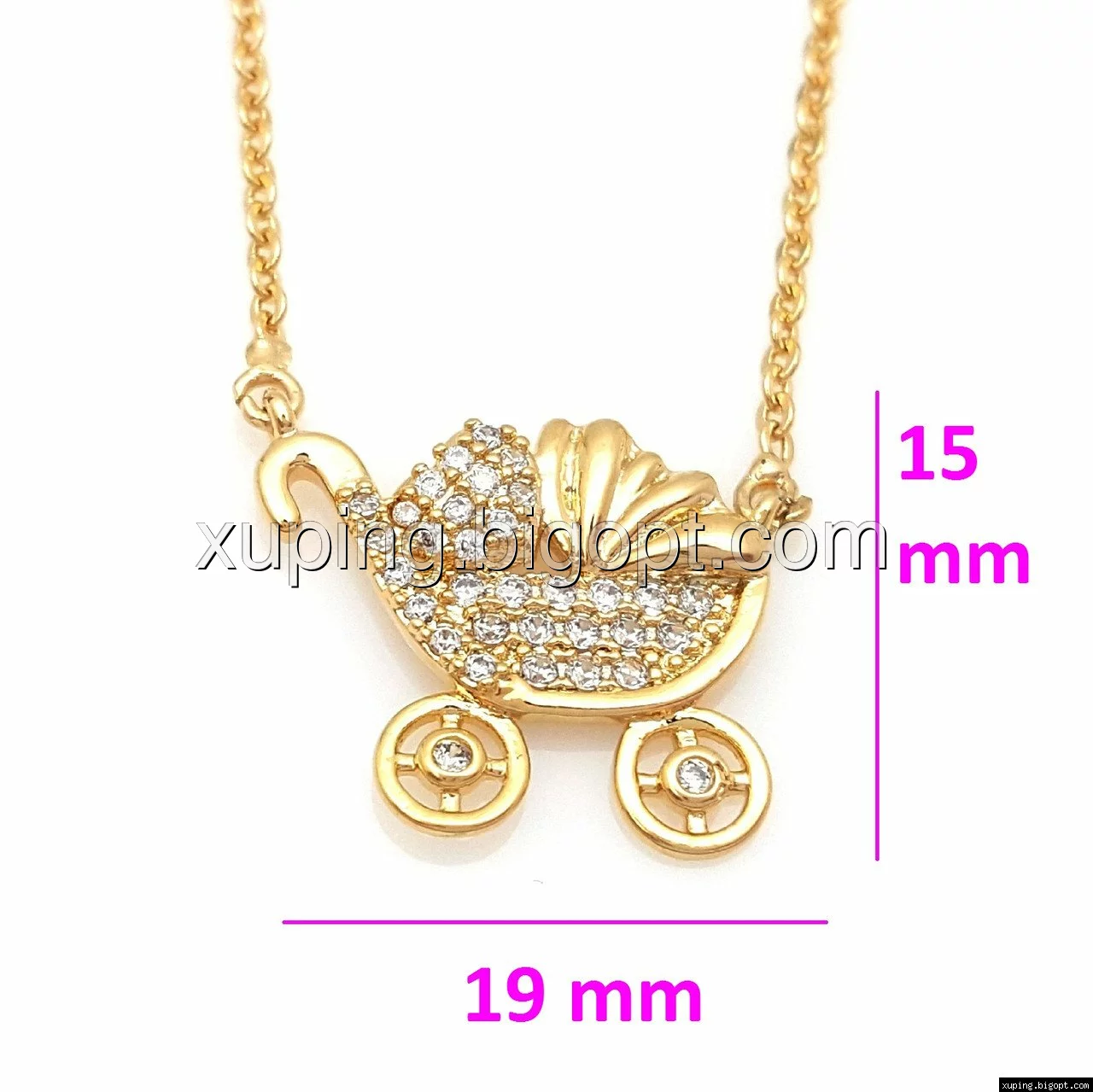 Подвеска позолоченная 73160, Детская Коляска, с камнями, р.44, бижутерия Xuping