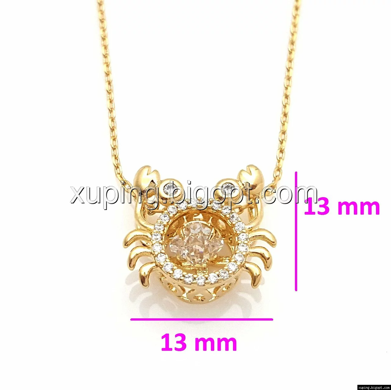 Подвеска позолоченная, Краб с цирконием, р.42-45