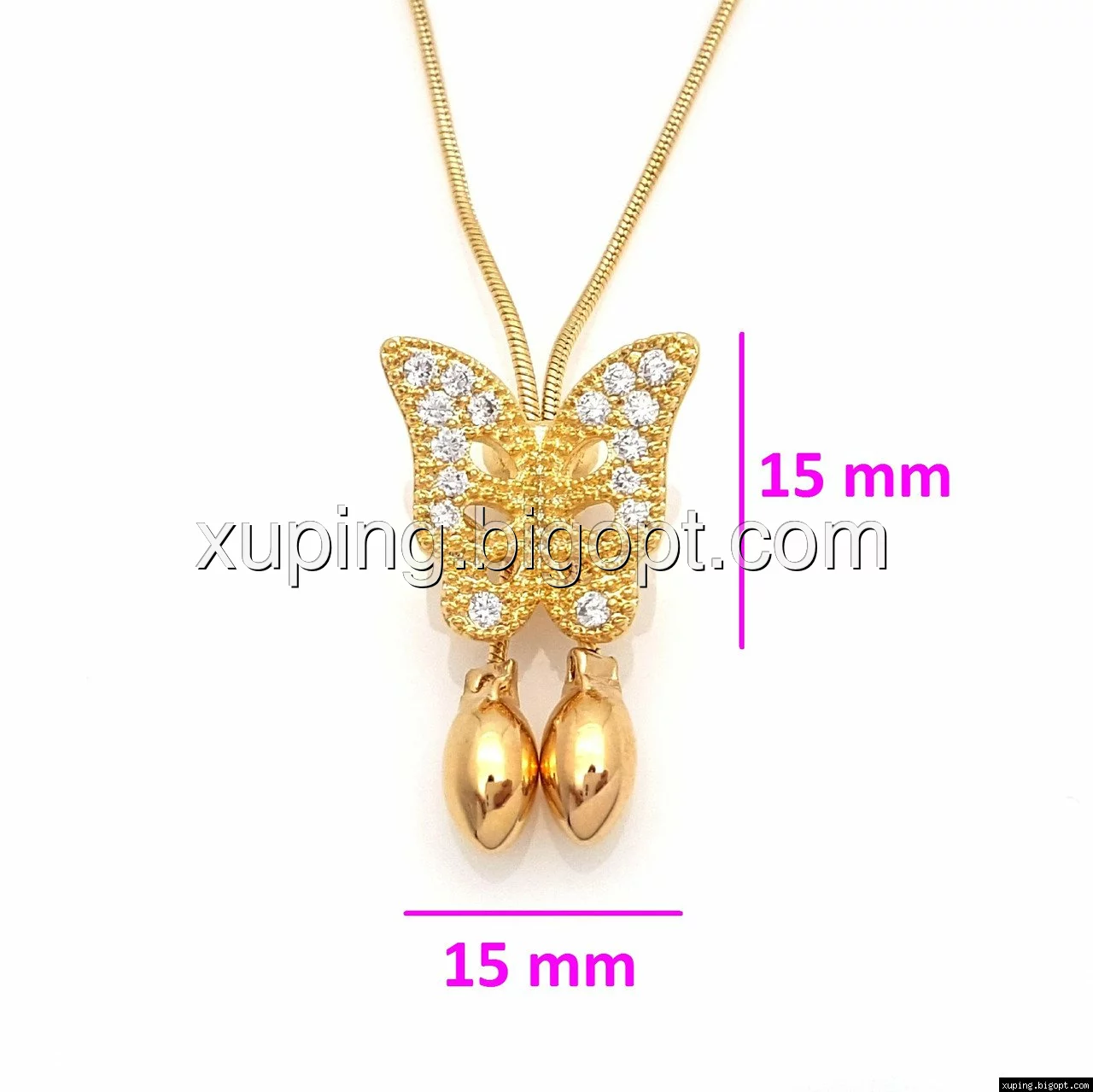 Подвеска позолоченная, Бабочка, с камнями, р.52-55