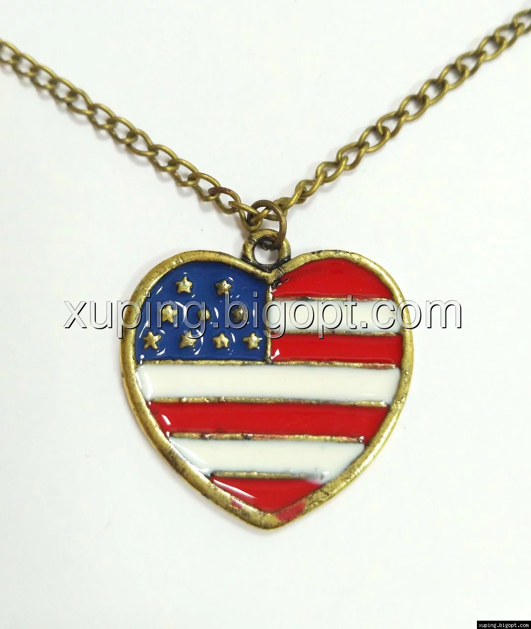 Подвеска Сердце с американским флагом. Размер кулона высота - 2,5 см, ширина - 2,7 см, длина цепочки