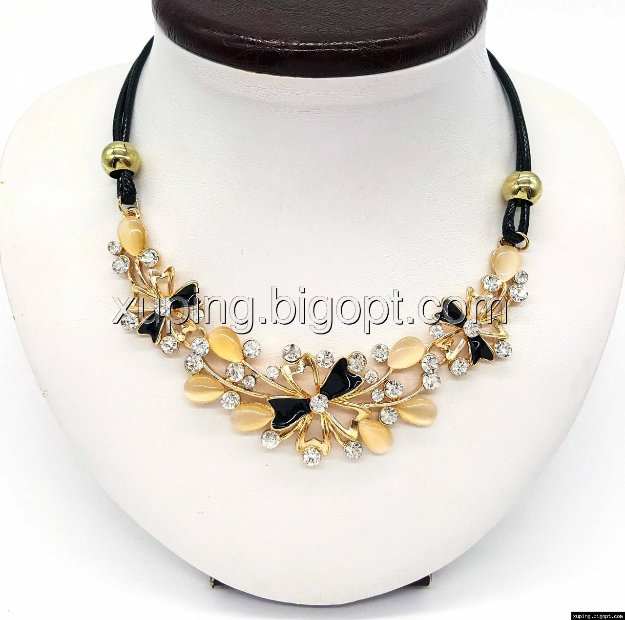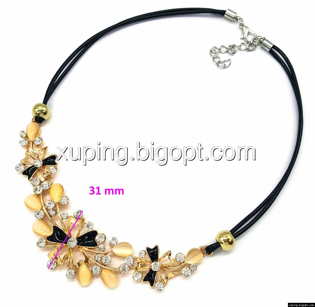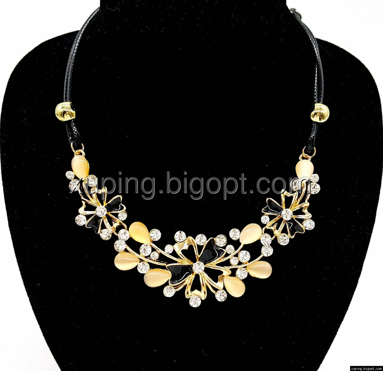 Подвеска Три Цветка, с черной эмалью и камнями, на веревочке, р.40-50