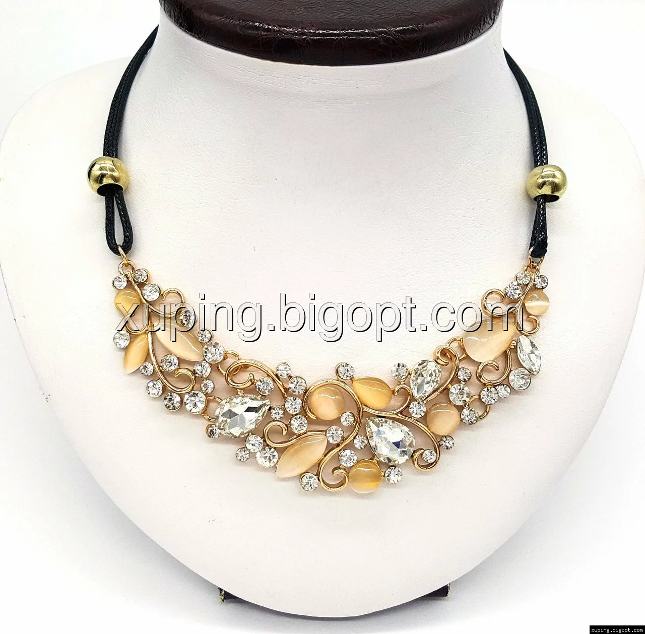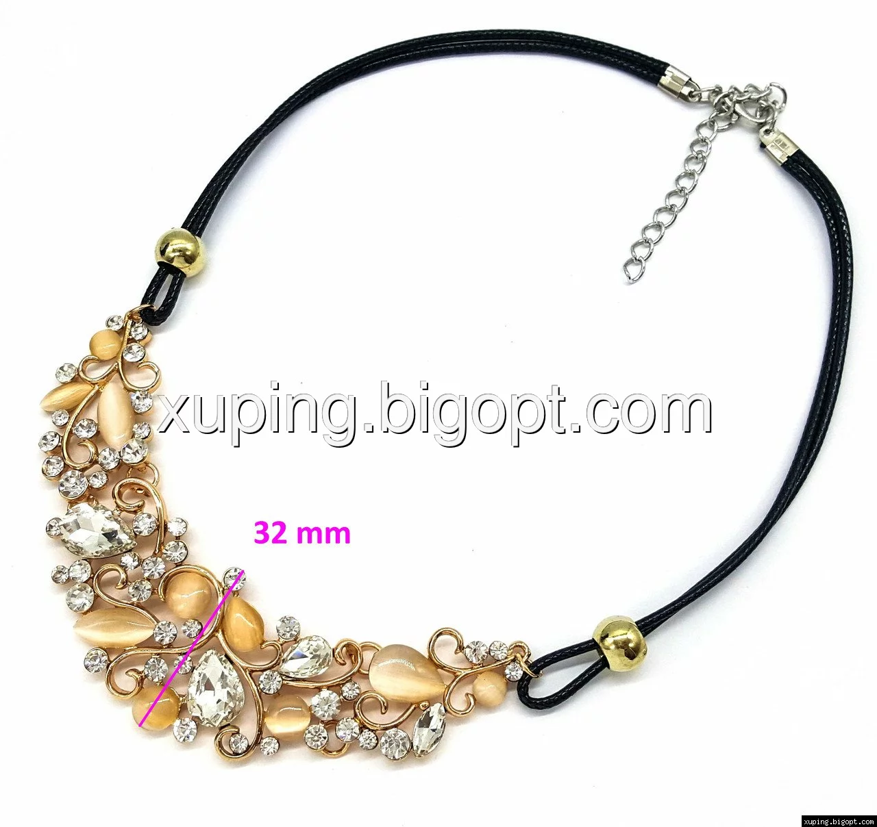Подвеска Завитки с бежевыми камнями, на веревочке, р.40-50
