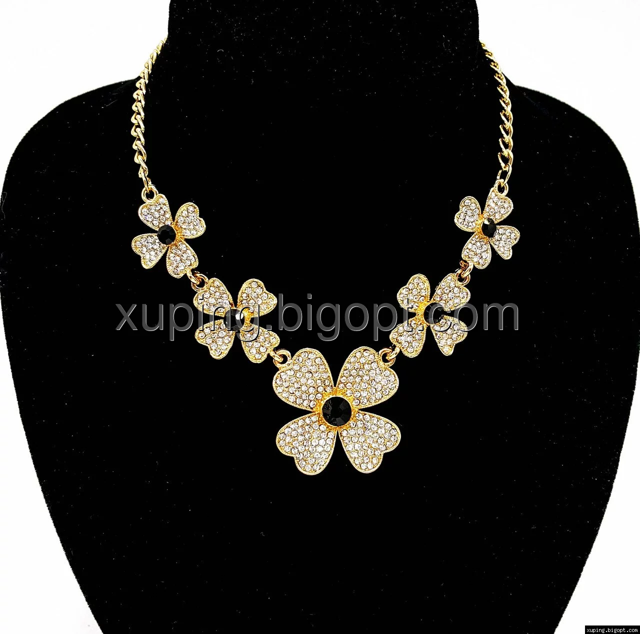 Подвеска 5 Цветков, с черным камнем, р.40-50