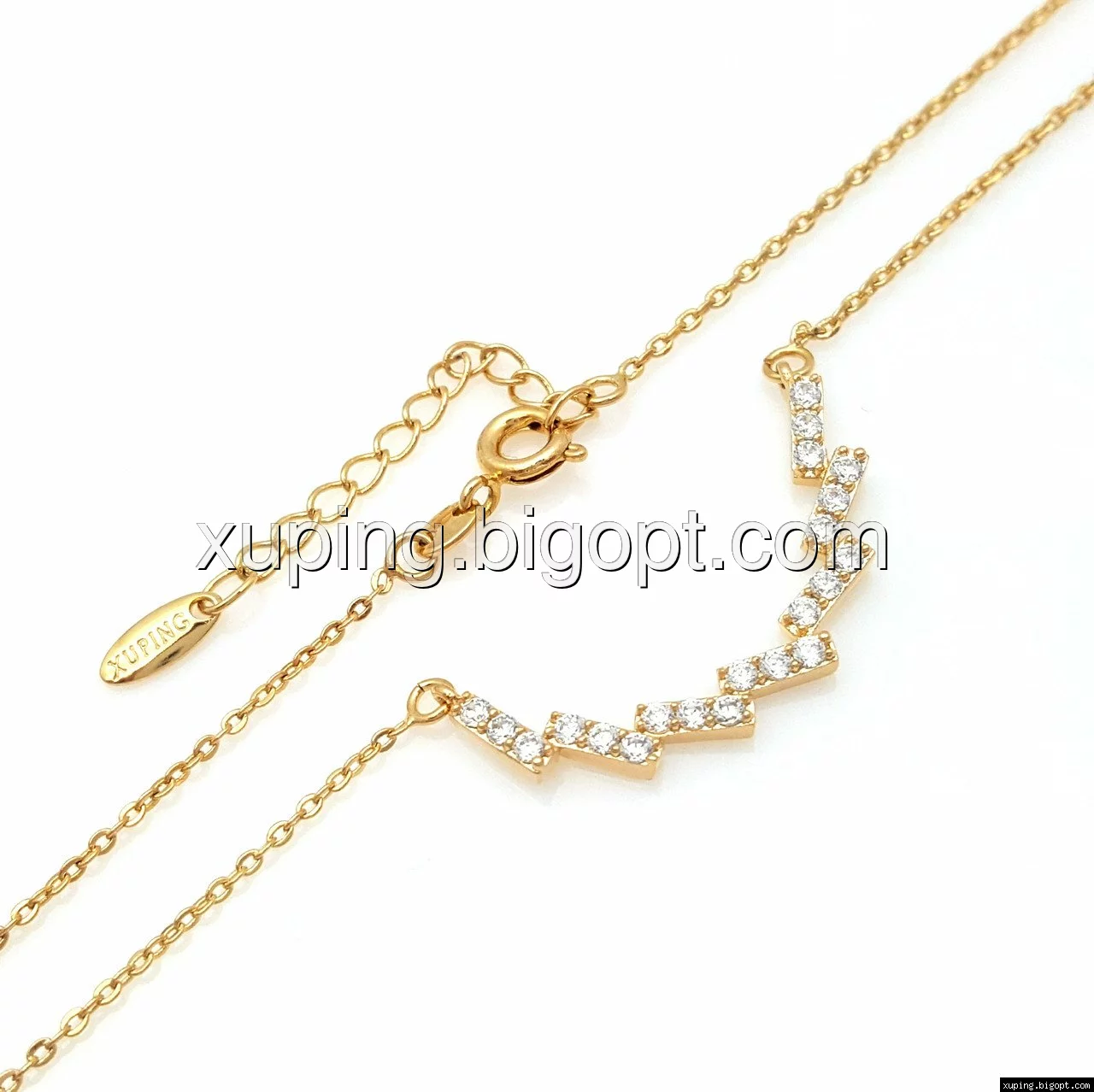 Подвеска 73145, Зигзаг, с россыпью камней, р.44-47, позолота Xuping