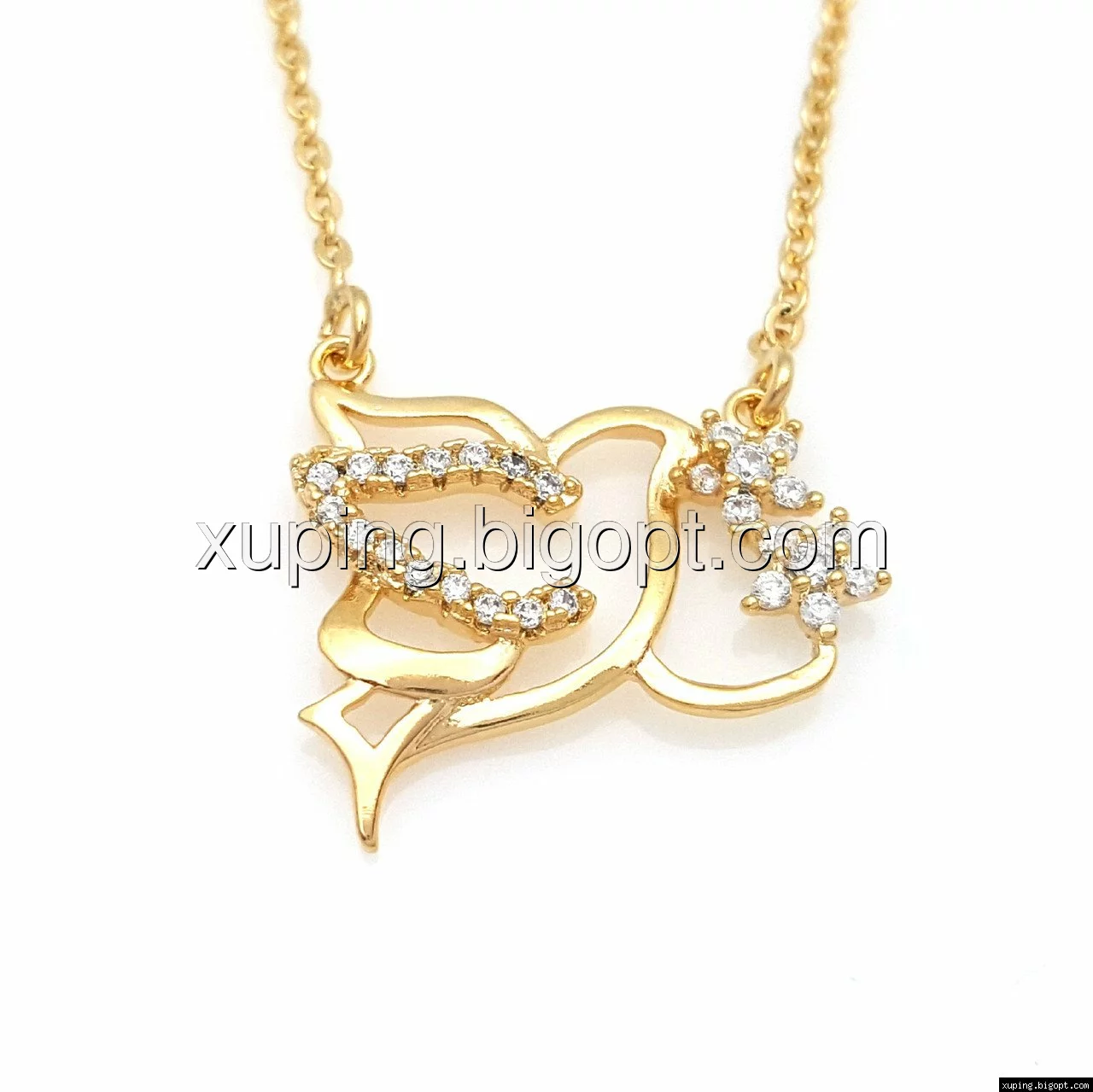 Подвеска 73146, Голубь и Два Цветка, с цирконием, р.46, позолота Xuping